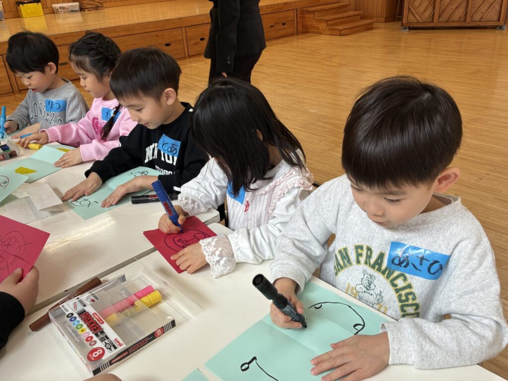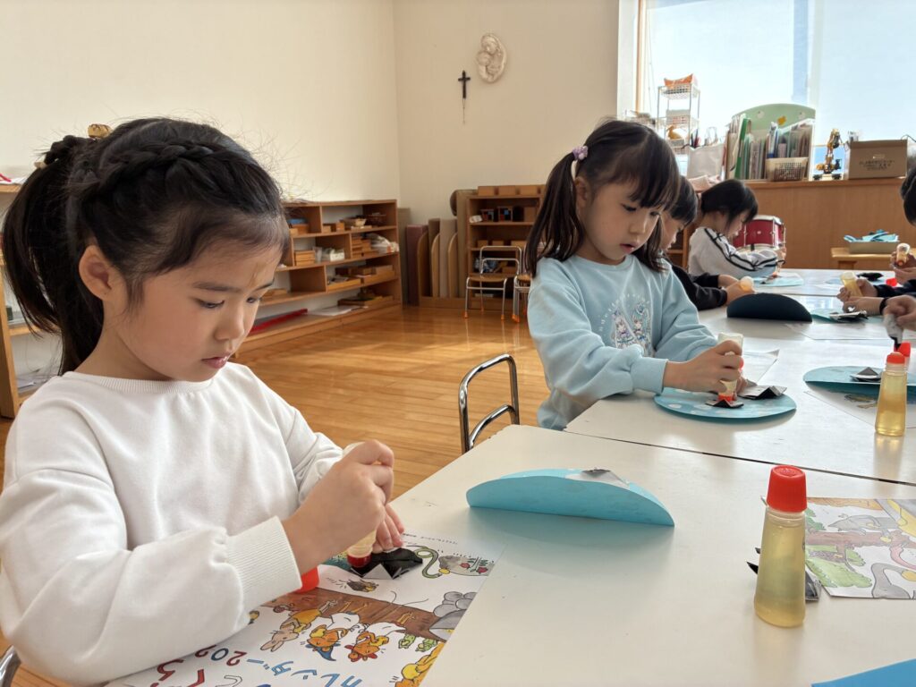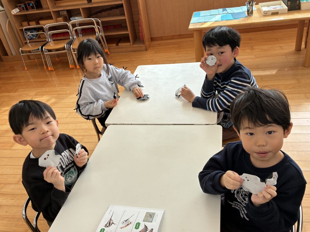 シマエナガを気に入ったようで、何度も「可愛い~~💓」と言いながら作る年長さんが可愛らしかったです!