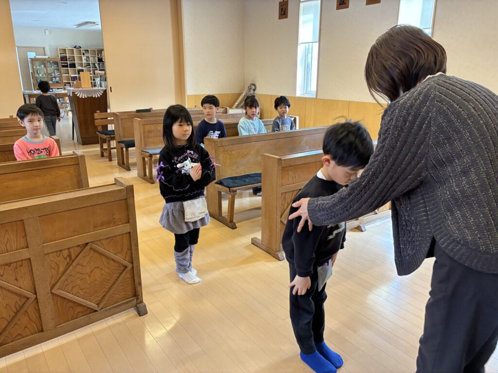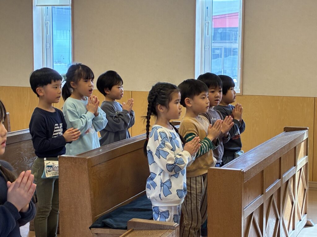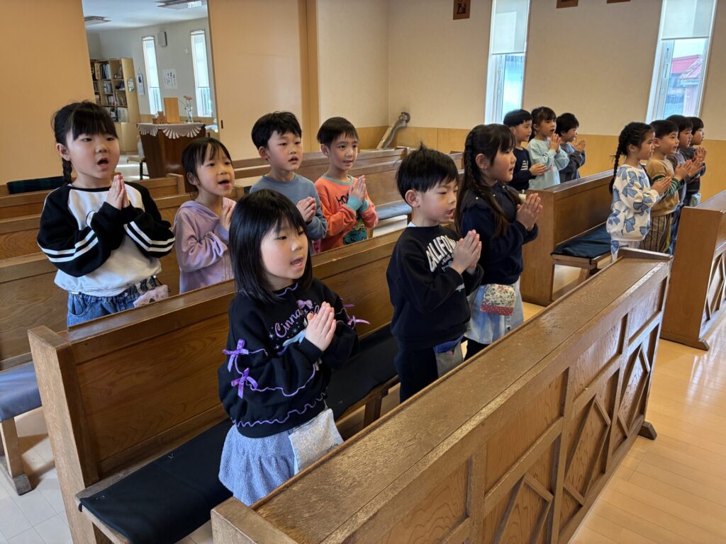 今日は、教会へ行き、卒園感謝の式の練習をしました。前回よりも声がよく出ていて、沢山のお祈りの歌も覚えてくれていて立派でした✨