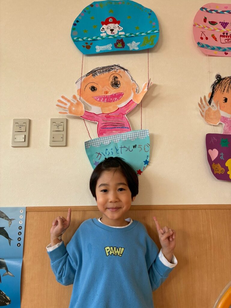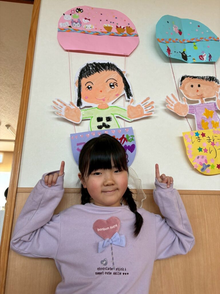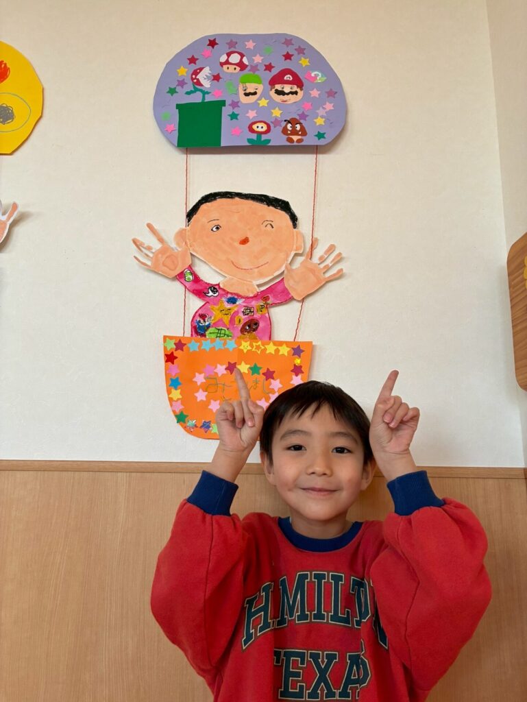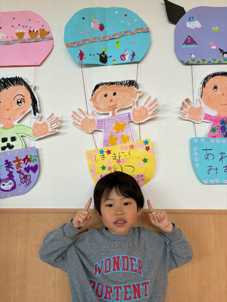 卒園飾りが完成しました🎈自分の似顔絵を描き、気球はそれぞれデザインして作りましたよ😊