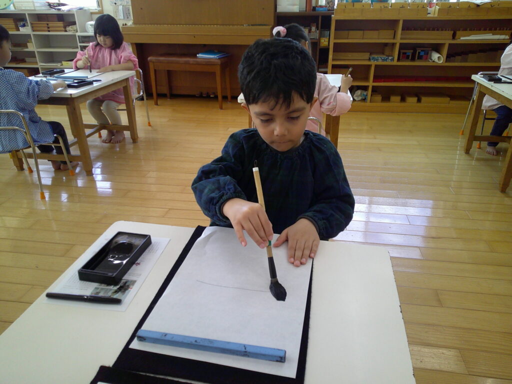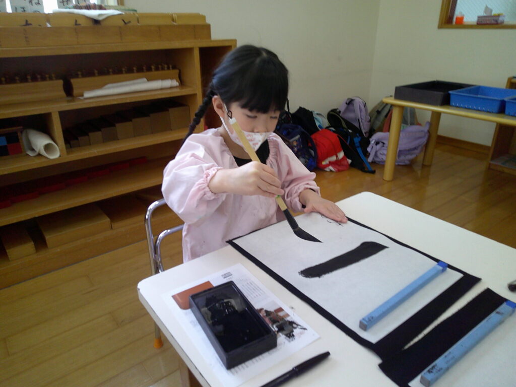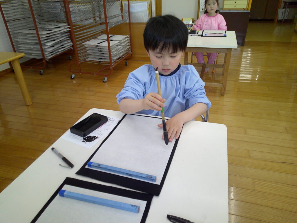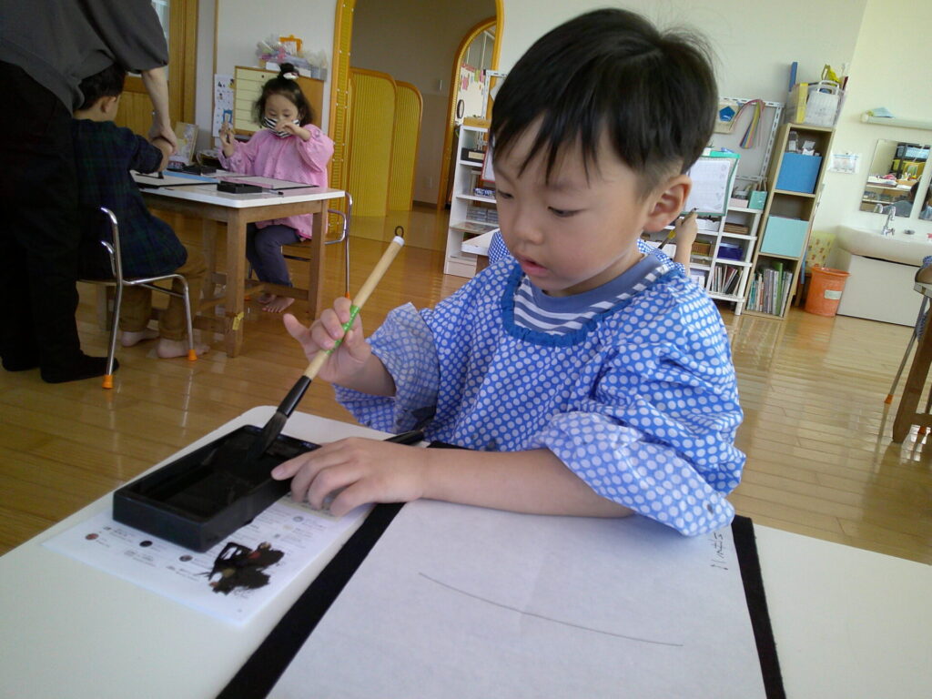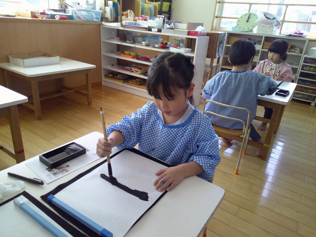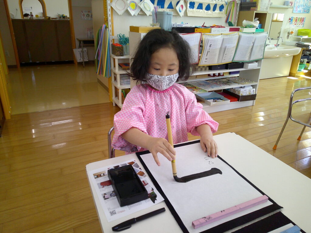 初めての習字をしました!筆の持ち方や座り方、書き方等沢山の事を覚えながら取り組みましたよ🖌️集中力を続けていく事が大変だったようですが、最後までやり遂げました✨廊下に飾ってあるので見て下さい!次回の習字も頑張りたいと思います😌