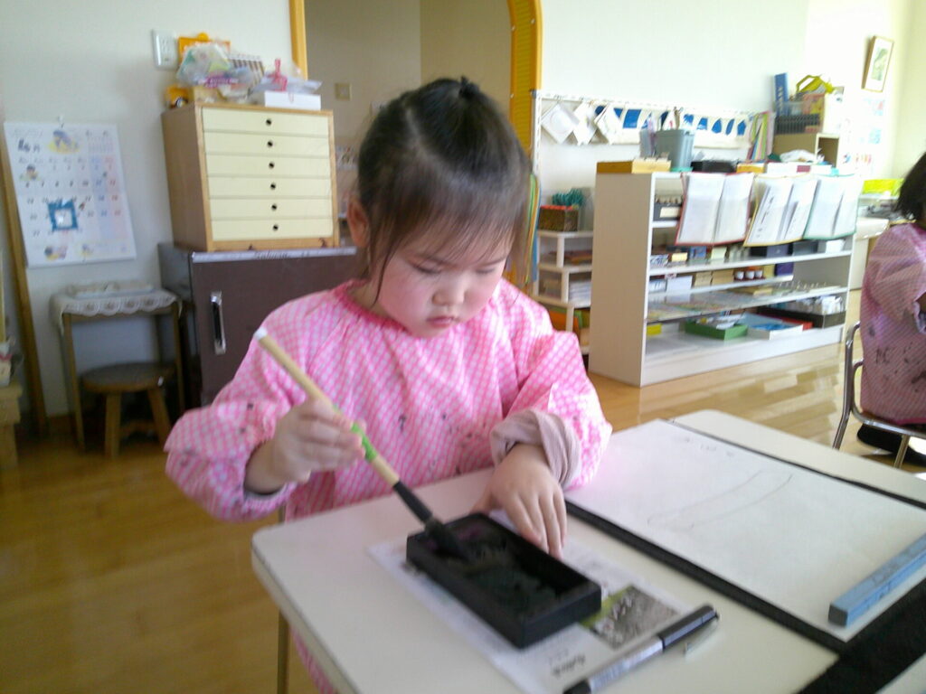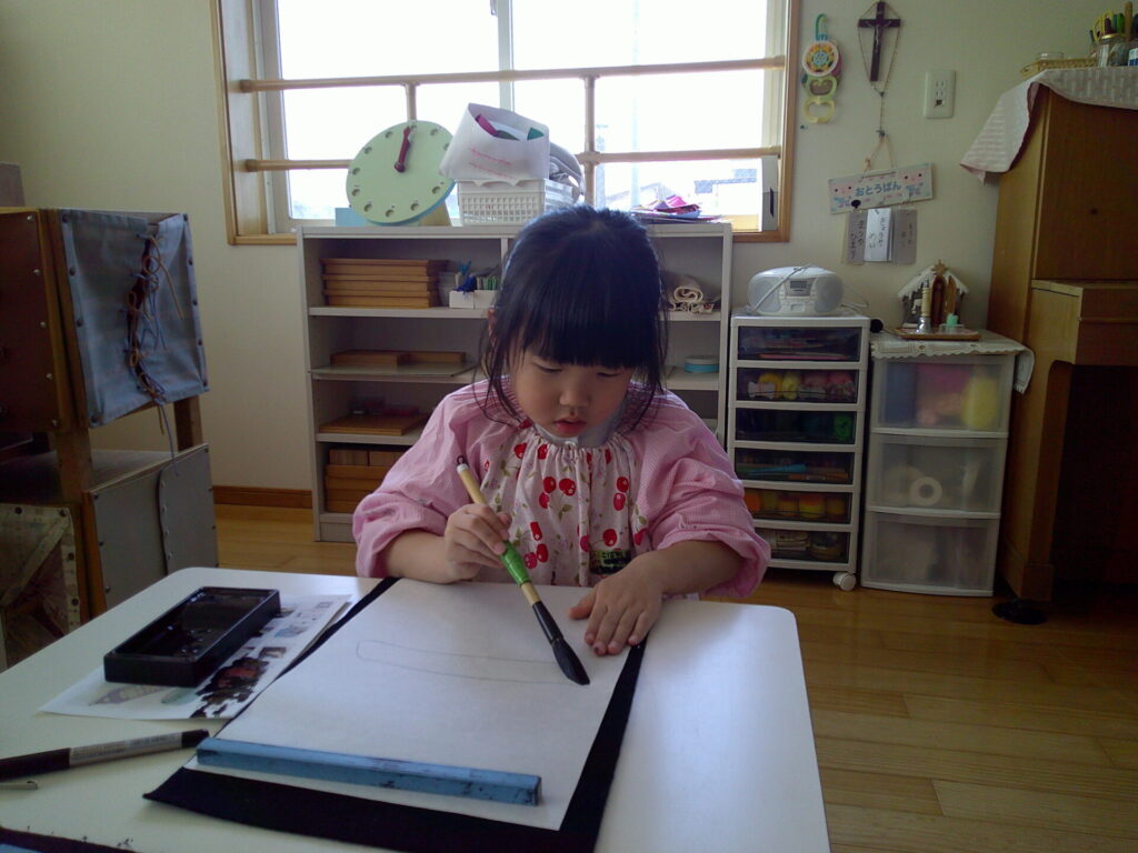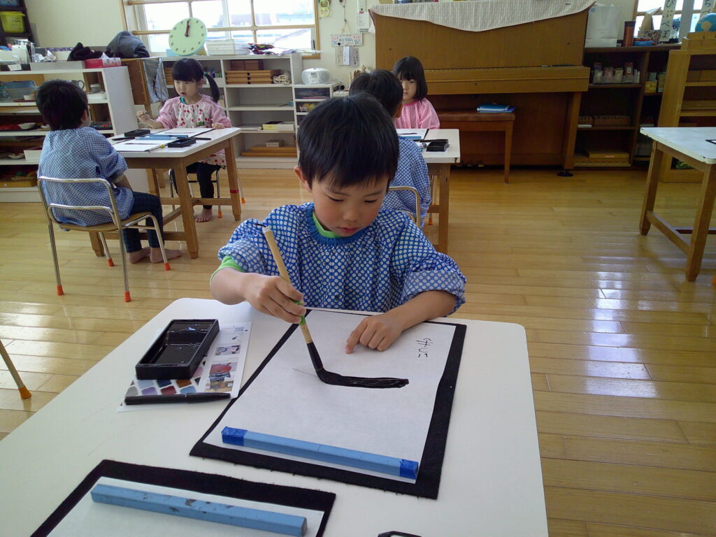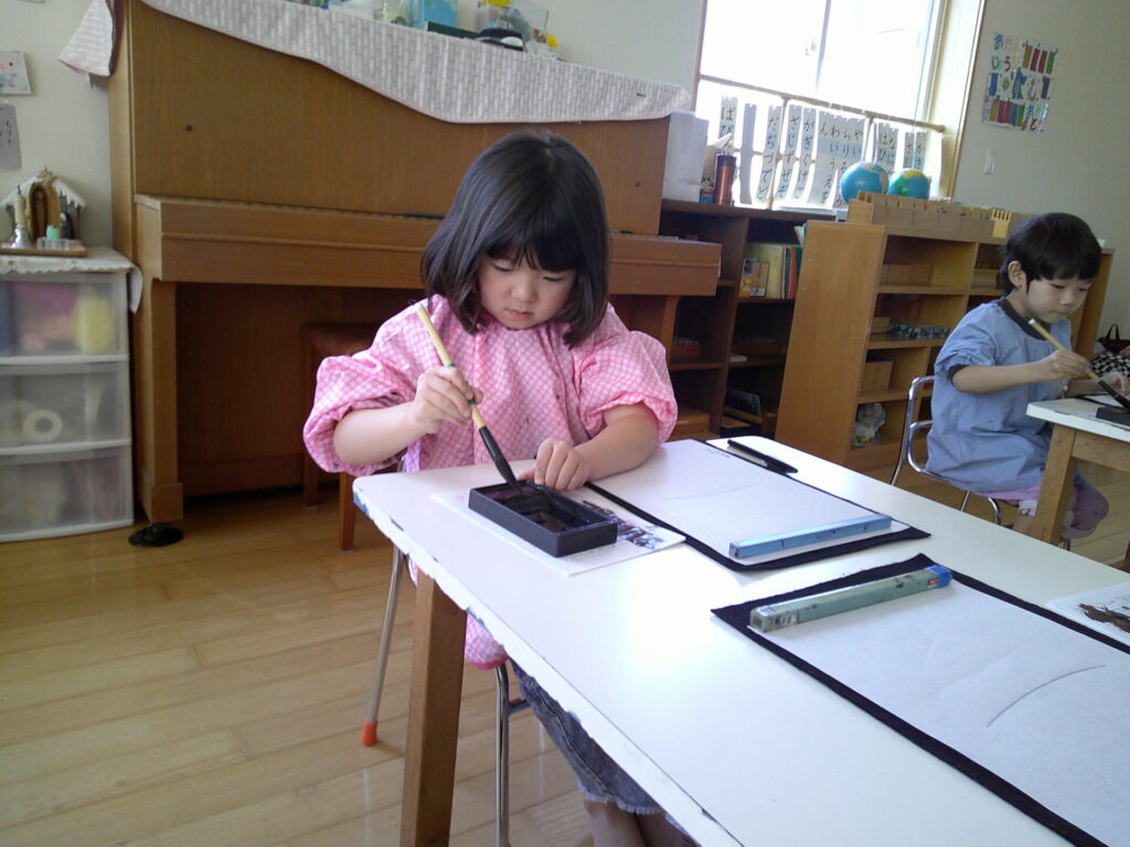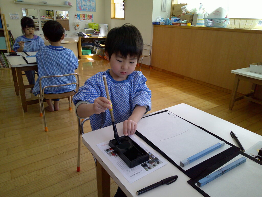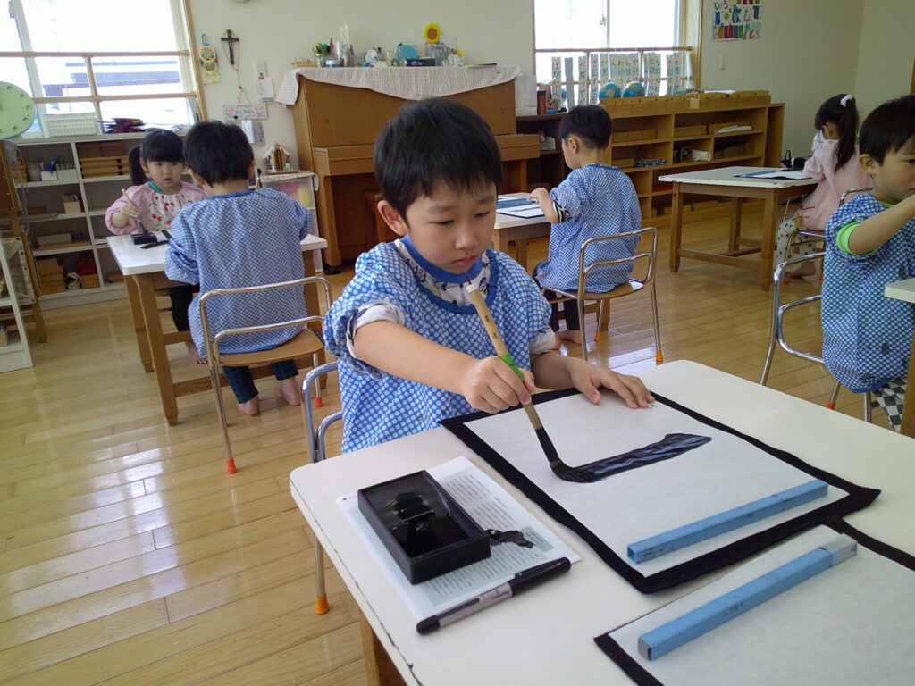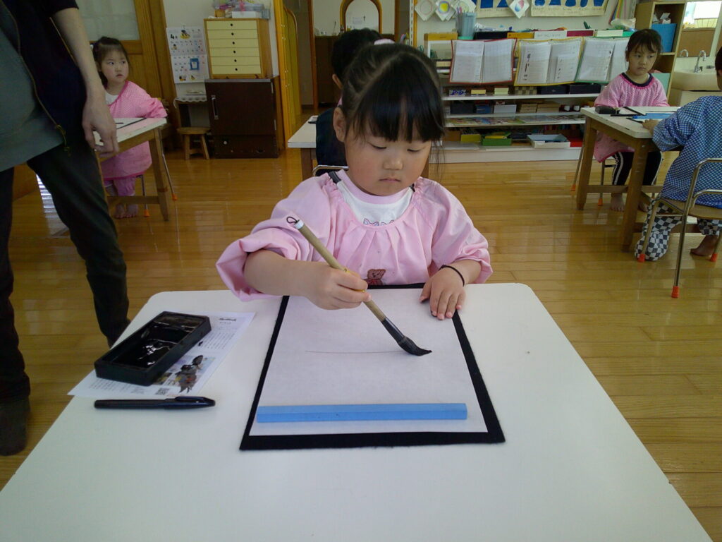 初めての習字をしました!筆の持ち方や座り方、書き方等沢山の事を覚えながら取り組みましたよ🖌️集中力を続けていく事が大変だったようですが、最後までやり遂げました✨廊下に飾ってあるので見て下さい!次回の習字も頑張りたいと思います😌