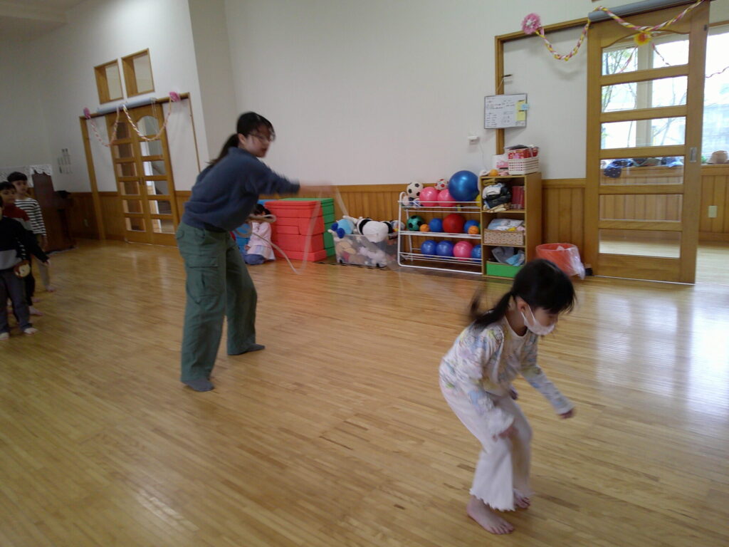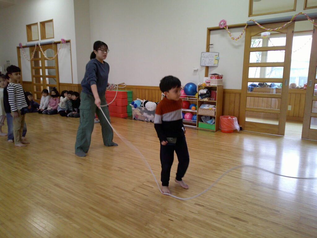 今日は縄跳びと大繩にチャレンジしました👍少しずつコツを掴んできたようで、跳ぶのもスムーズになってきました。大繩では回しながら入るのもスッと入ることができ上手でしたよ😊引き続き練習をしていきたいと思いますね✨