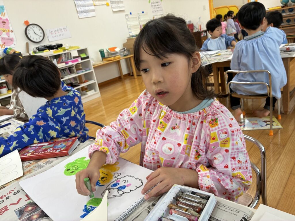 絵を描くのが上手なみんなは大活躍!絵本を見ながら、ツボを描いたり、宝石や王冠を作ったりしました👑