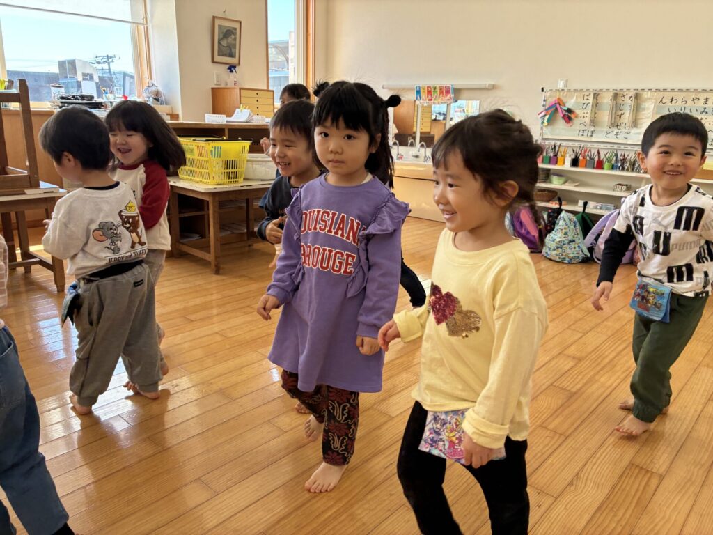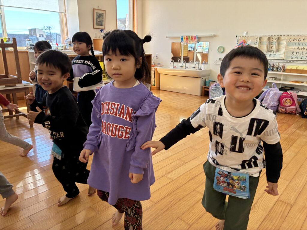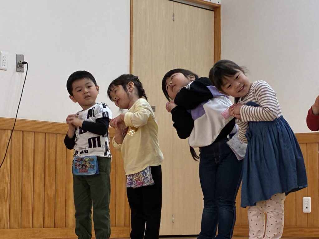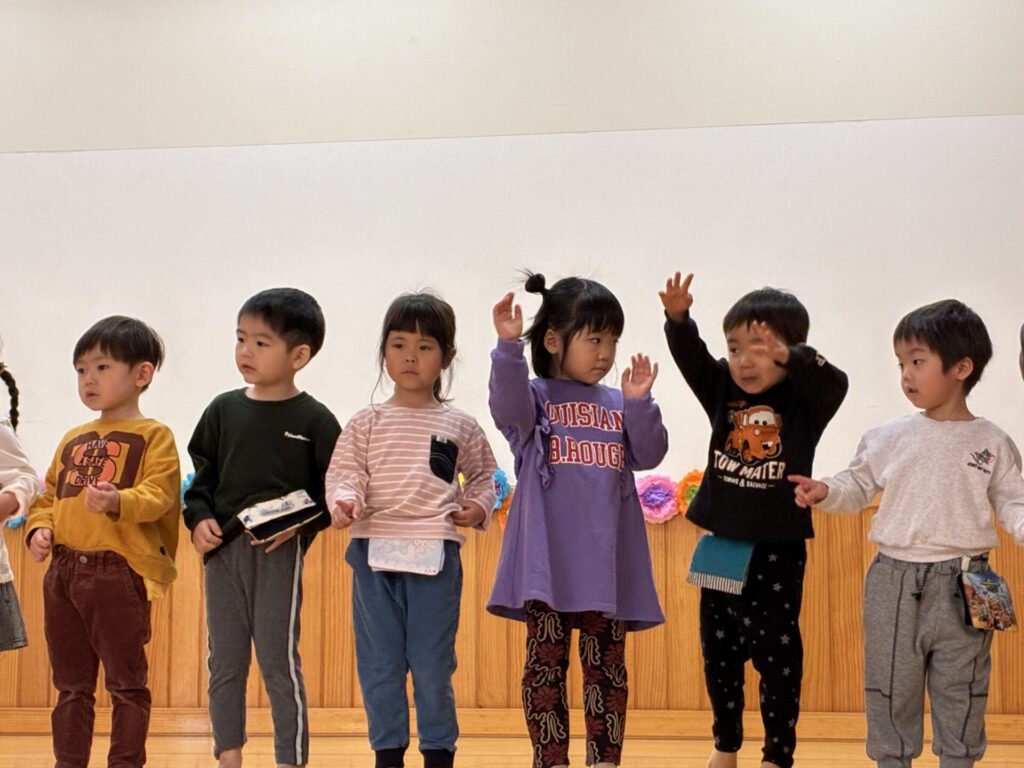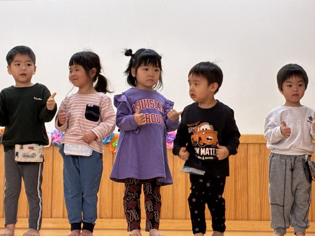 今週から、入園式の練習が始まりました。久しぶりに踊った、「それもいいね!」のダンスも、バッチリ覚えていて、楽しんで踊ってくれていましたよ😄自分達よりも、小さい子が居るということで、お兄さん、お姉さんにならなくちゃ!と頑張っているすがたも沢山見られます。素敵ですよ✨