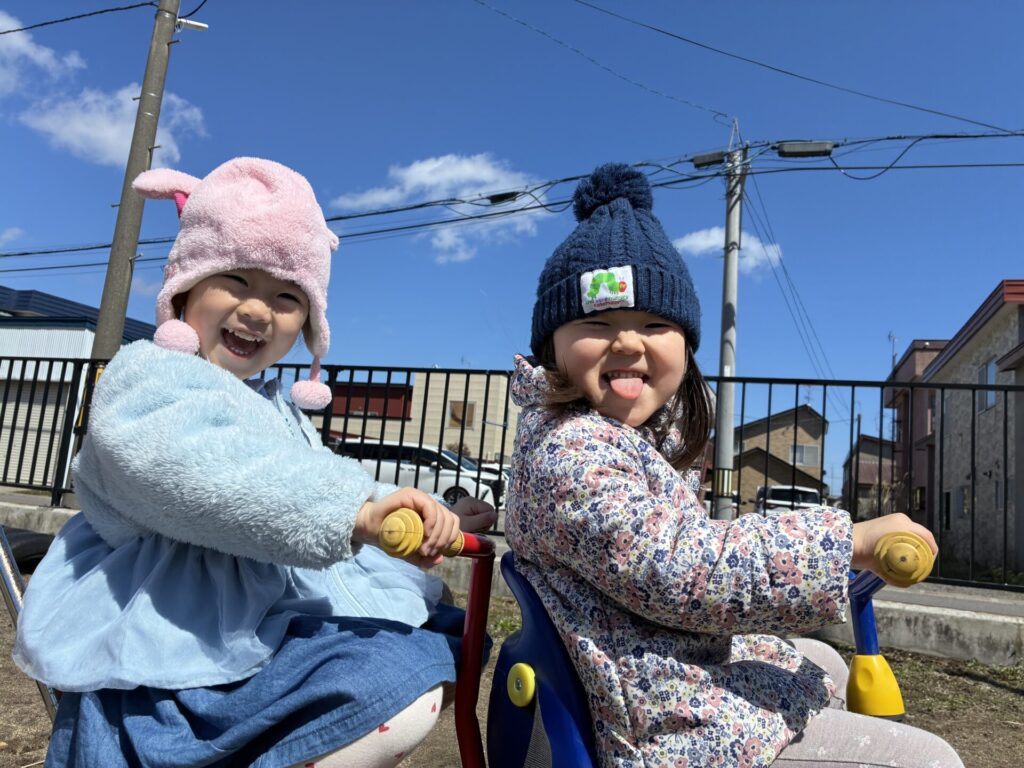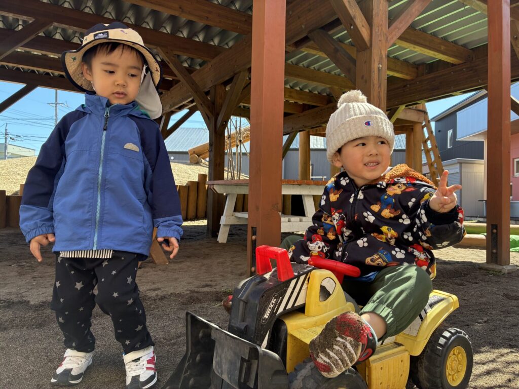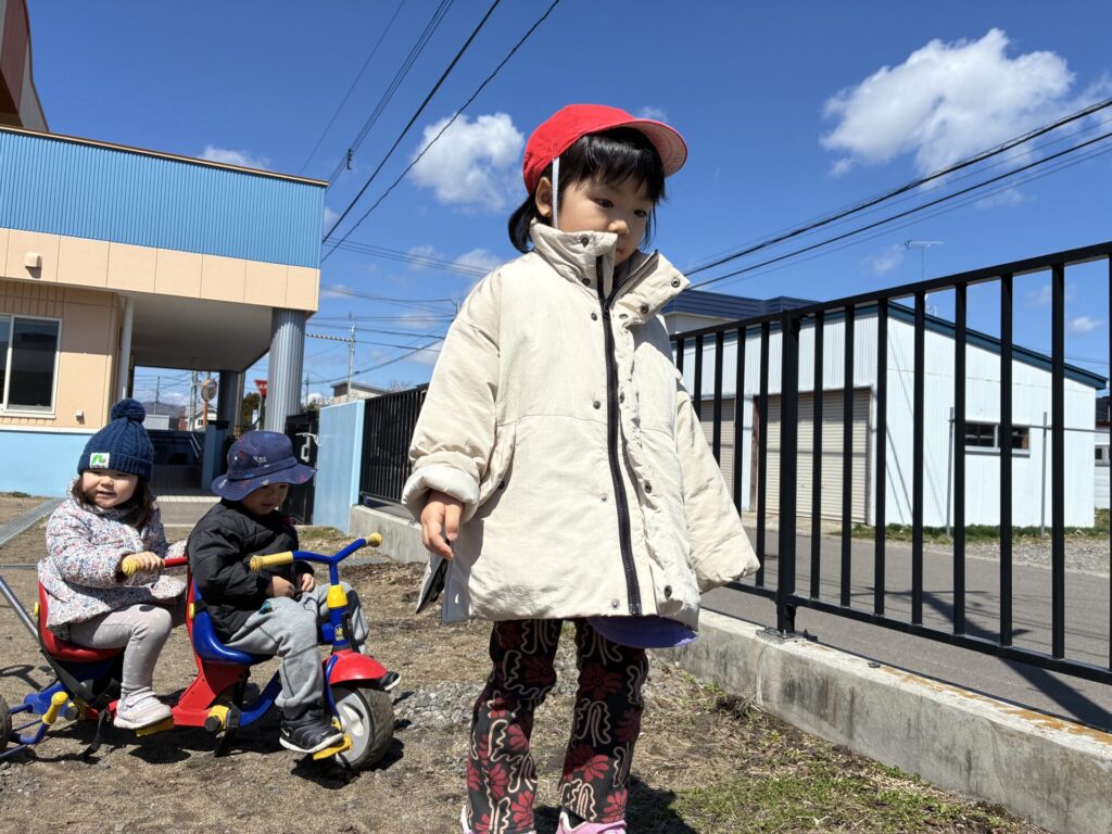 そして、今日は、外遊びをしました!「外で遊ぶよ!」と伝えると、「やったー!!」と喜ぶ黄色バッチさん♥️