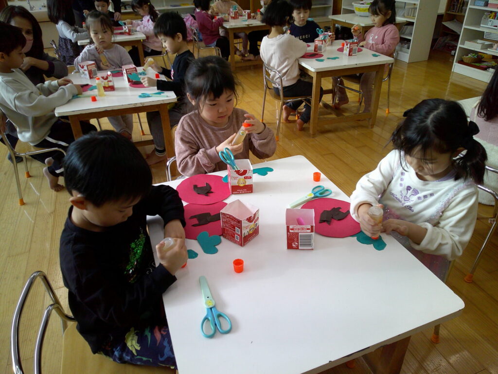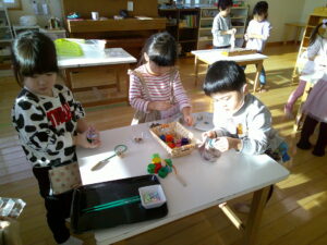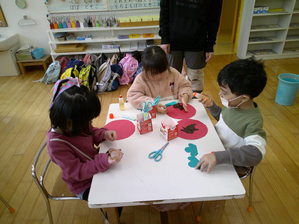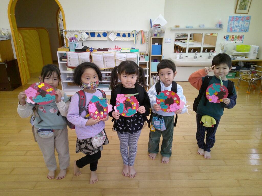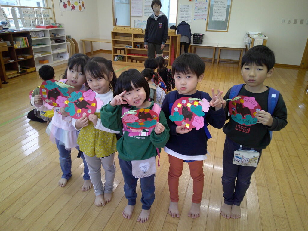 お正月飾りを作りました🐎作り方を説明しながら丁寧に作っていましたよ。来年は青バッチさんになるということで、「青バッチさんになったらやりたいこと」を考えてもらい書きました。青バッチになったことを想像しながら考えていた子ども達です。お家でもぜひ飾って下さいね😊