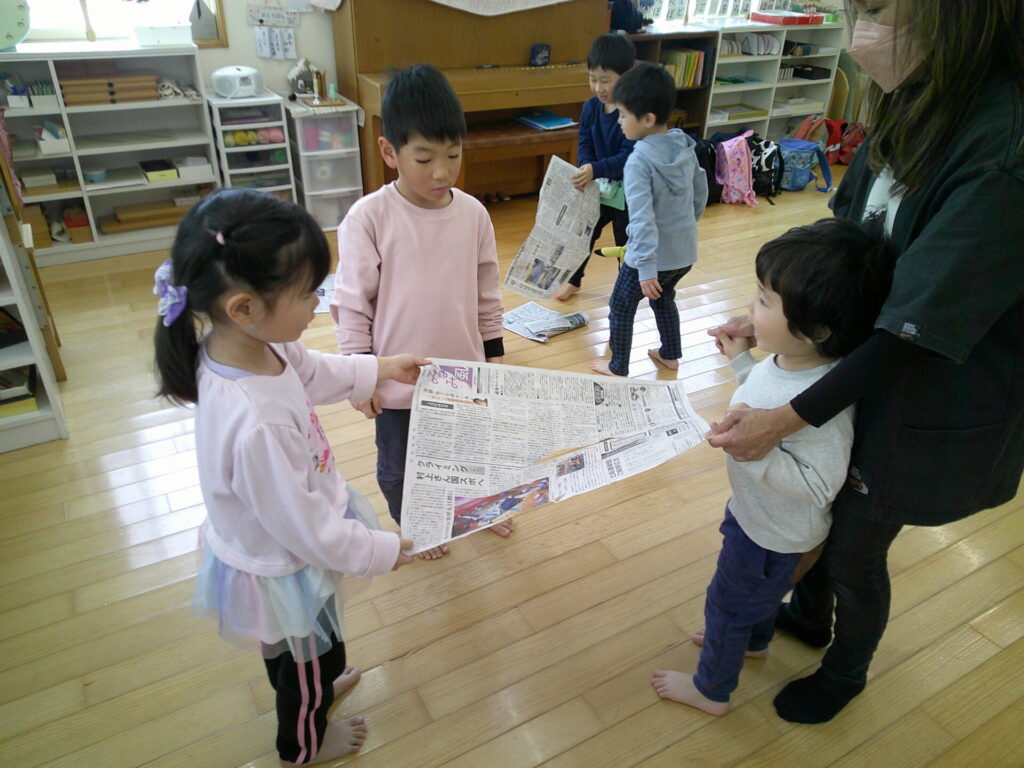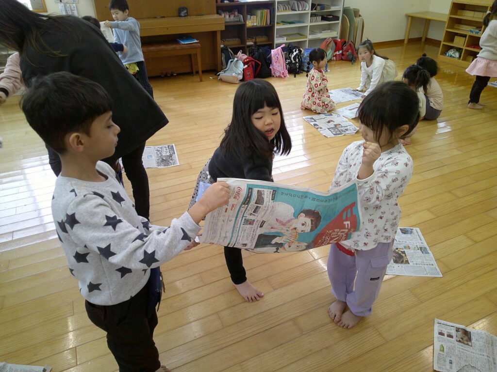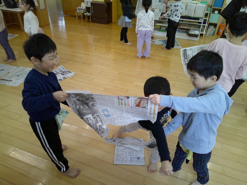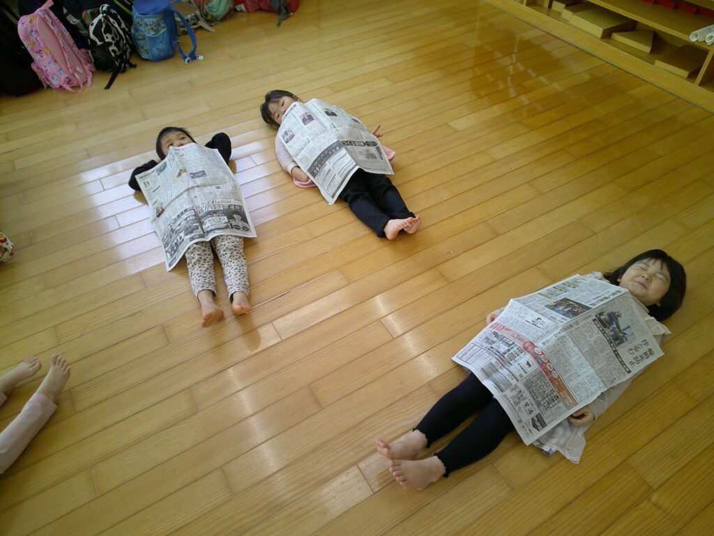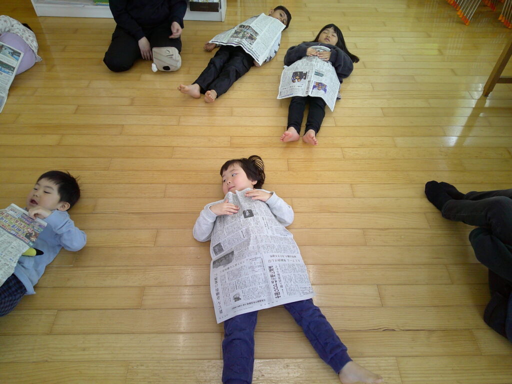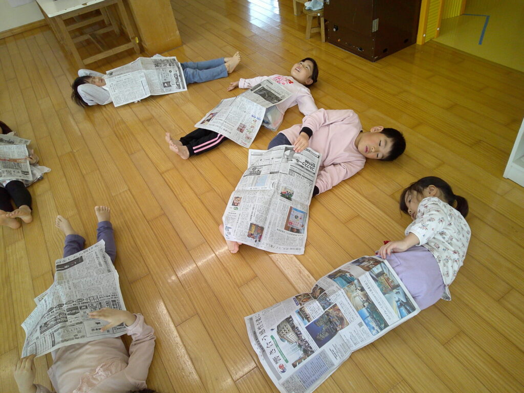 新聞紙遊びをしました📰新聞紙を布団にして寝ていた子ども達です☺️ちゃんと「ぐーぐー」と寝息を立てていた姿が可愛らしかったですよ😪そのあとに新聞紙をパンチして破けるのかチャレンジしました!最初は上手く破けず苦戦しつつも上手に破ける事ができると「出来た!」と嬉しそうにしていました。