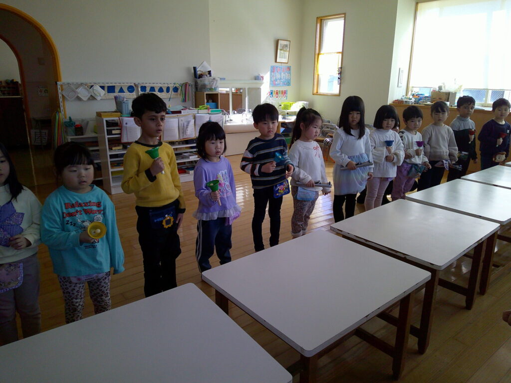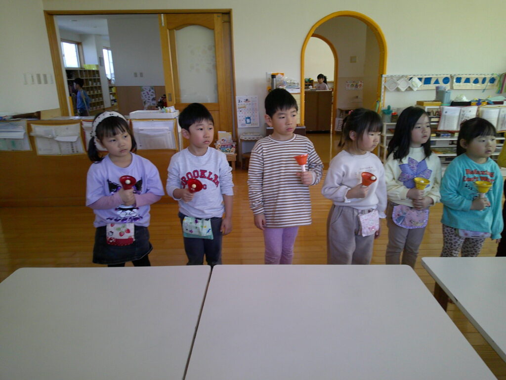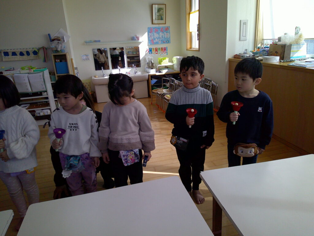 ハンドベルに挑戦しました🔔「ドレミの歌」に合わせて自分が担当する音階をよく見てリズムに合わせて鳴らす事が出来ていましたよ。ドキドキしながらも「ドレミの歌」になっていたことが分かると喜んでいた子ども達でした💓