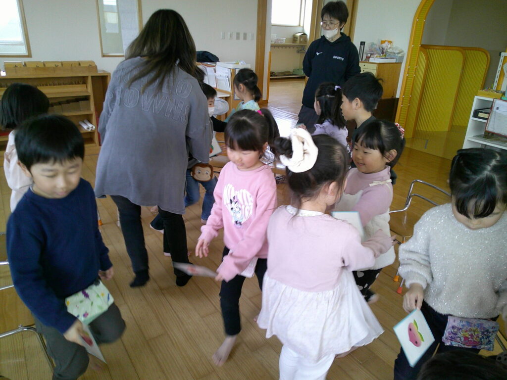 英語では「フルーツバスケット」に挑戦しました🍒自分が持っているカードをよく見てそのフルーツが言われたら動くというルールで行いましたよ🍈最初はルールがピンと来ていなかったようですが、慣れてくるとスムーズに進んでおり、とっても楽しんでいた子ども達でした🍓