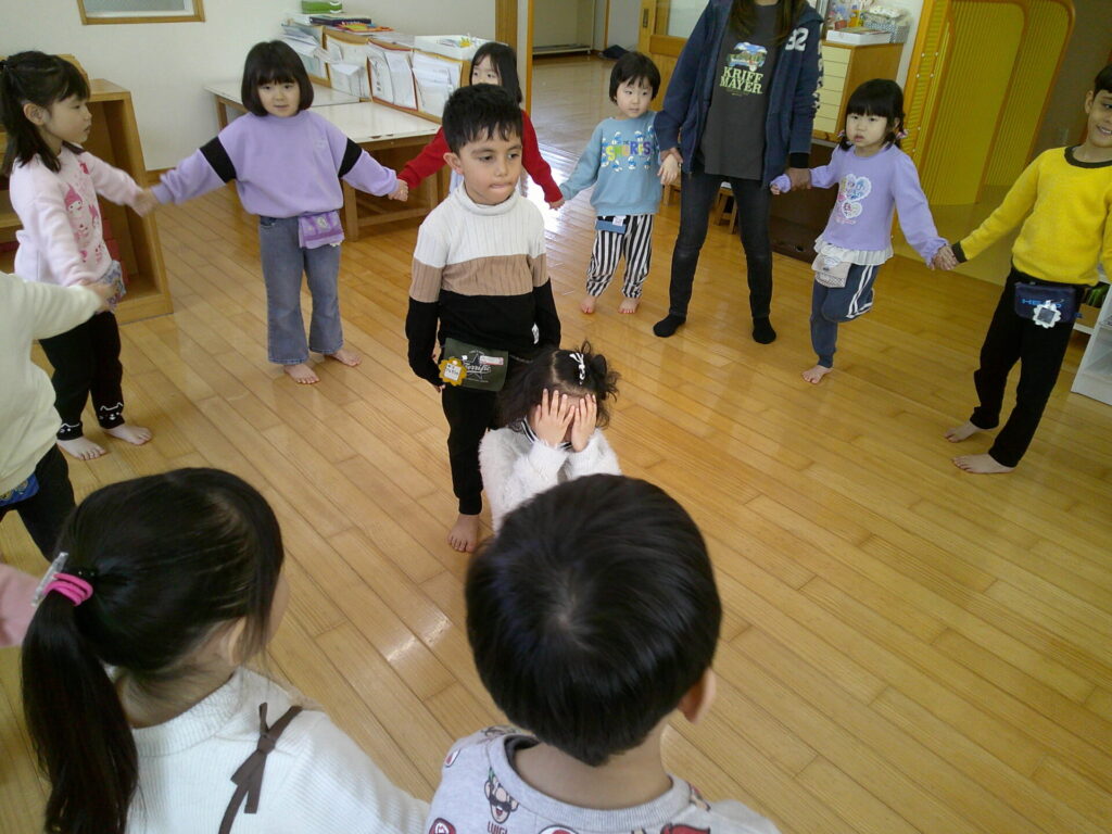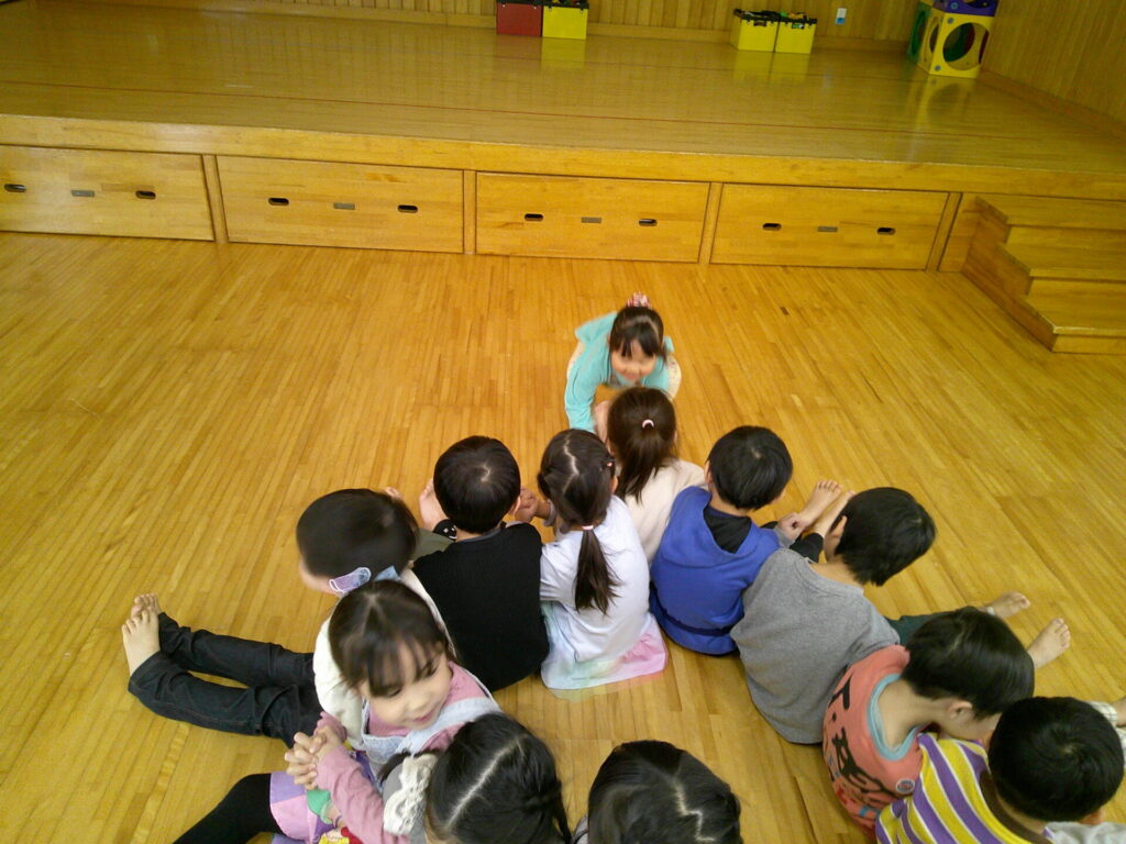 「スキッピーカンガルー」という遊びをしました🦘真ん中にカンガルー役の子がいて後ろにいる子が誰なのかを当てるというゲームです。声だけを頼りにお友達を当てるというのが新鮮で、小さな声で見守っていた子ども達でした。お友達を当てる事が出来るとカンガルー役の子がとっても喜んでいた姿が可愛らしかったです💓