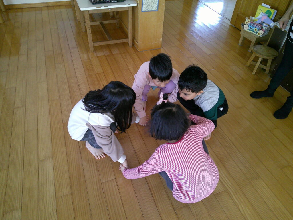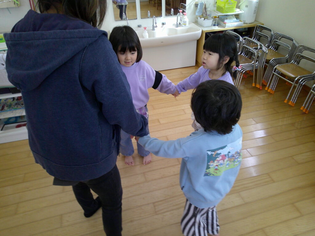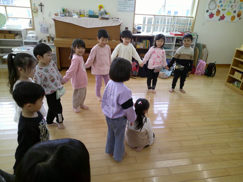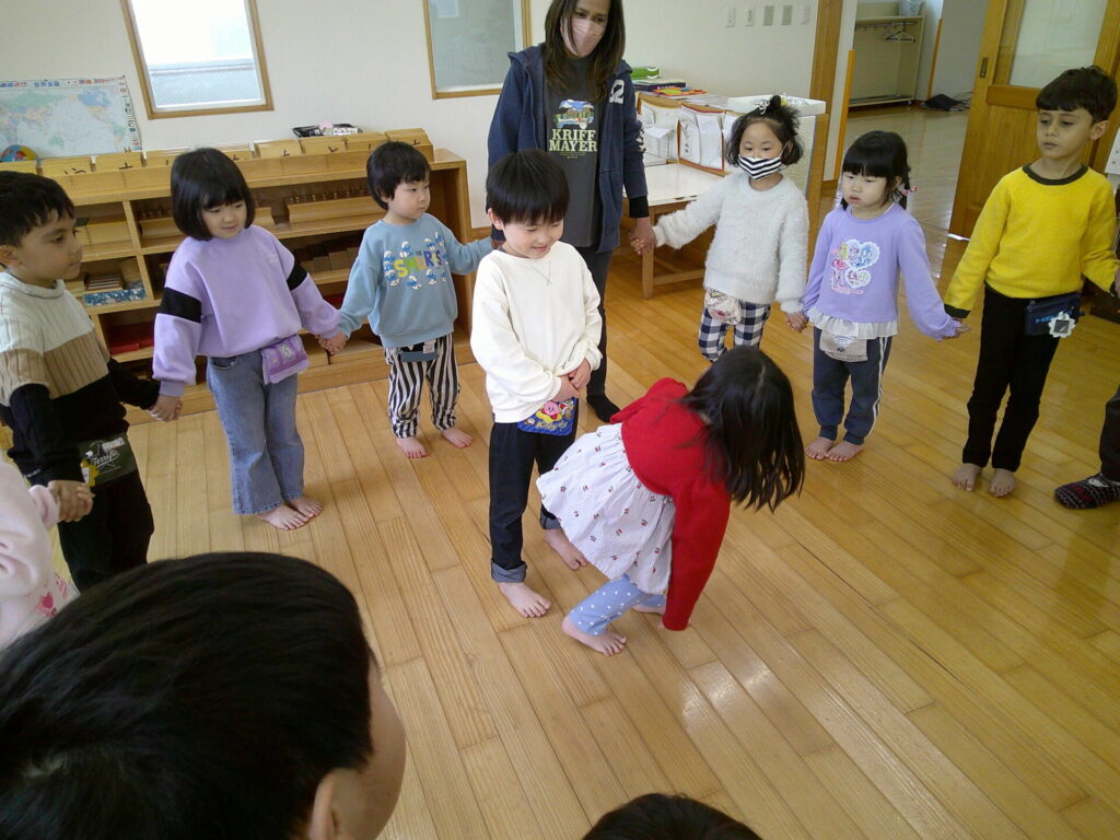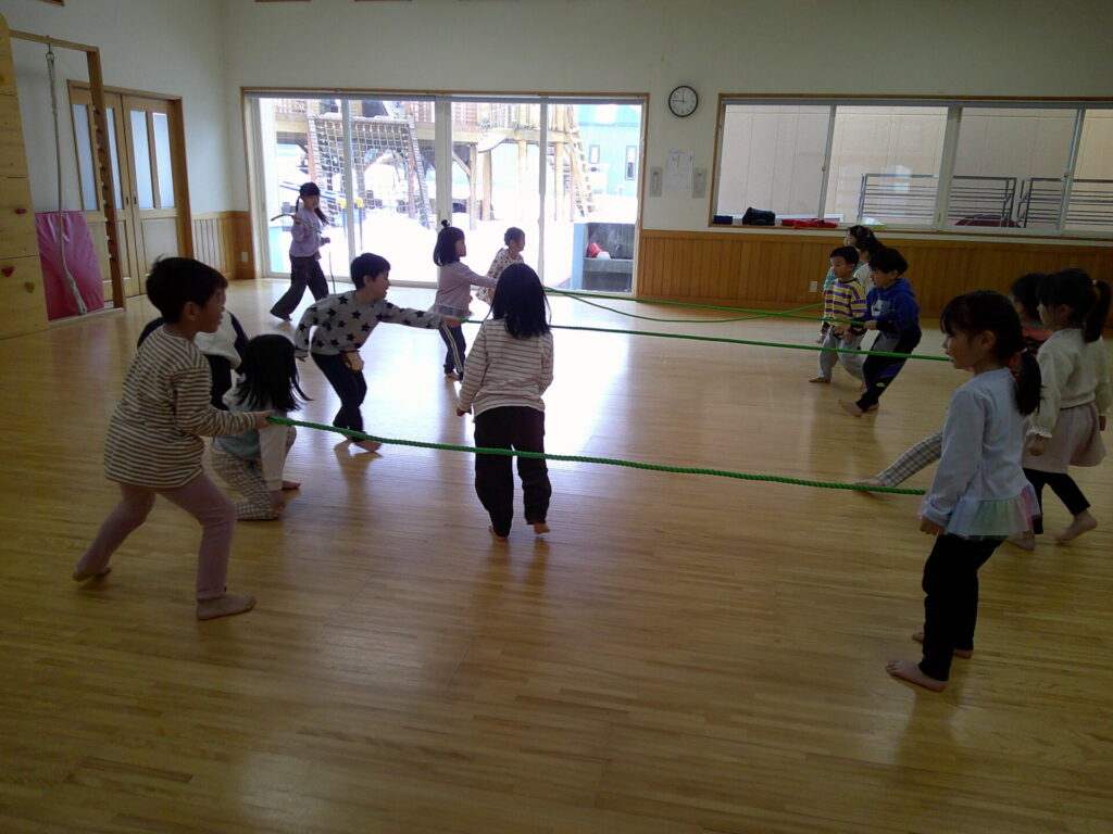 「なべなべそこぬけ」をしました。ルールを確認しながらチャレンジしましたよ💪人数が増えてくるとどうやってひっくりかえるのかが分からず苦戦していましたが、慣れてくるとスムーズに入ることが出来ていました。最後には全員でひっくりかえることが出来、バッチリでした✨