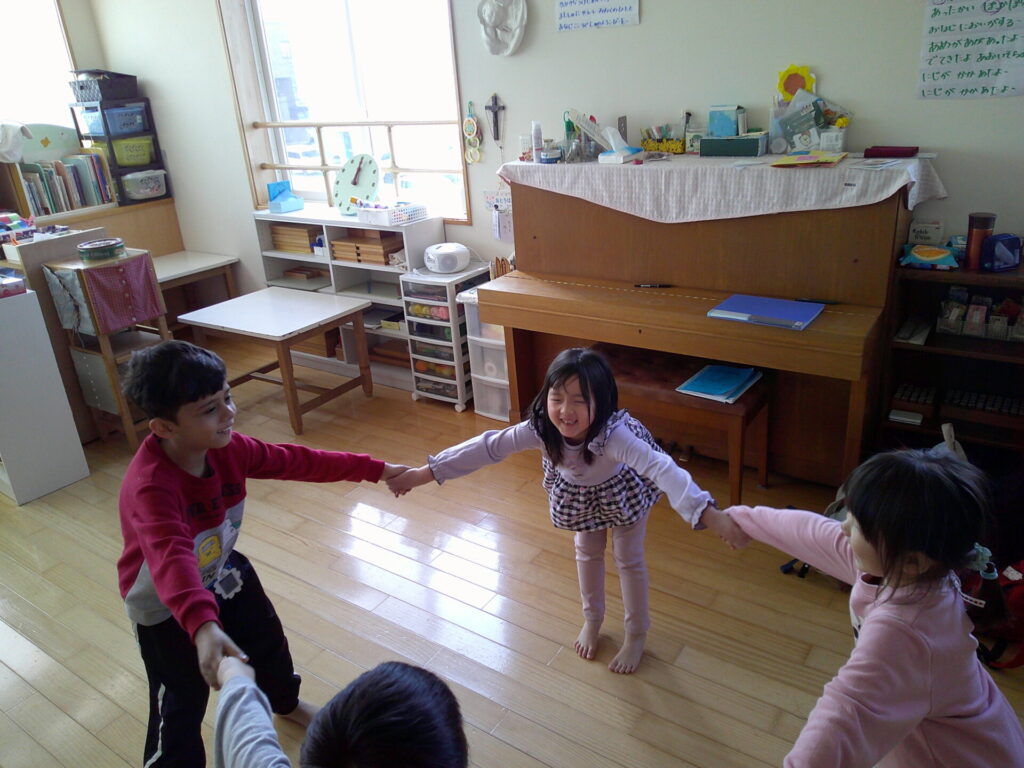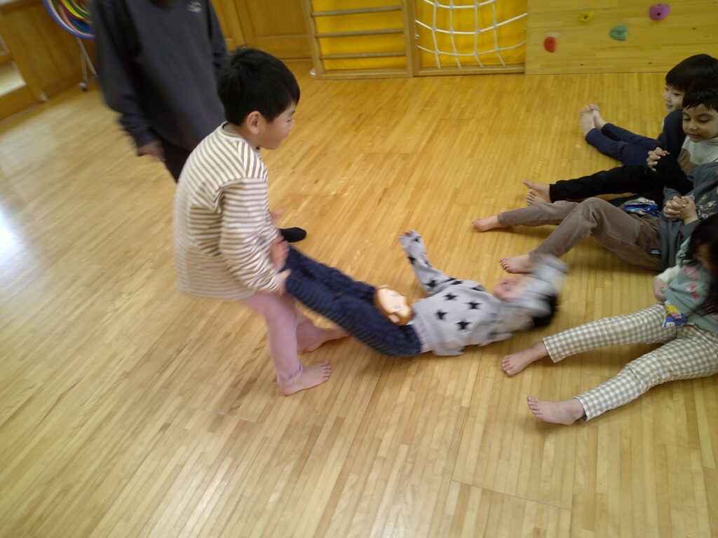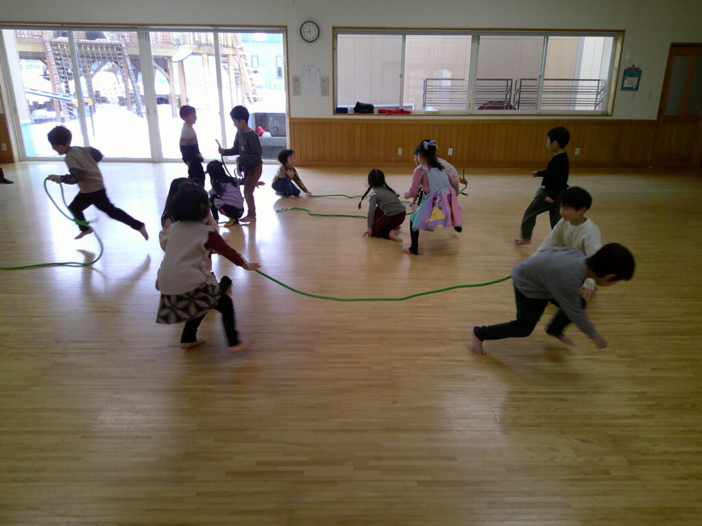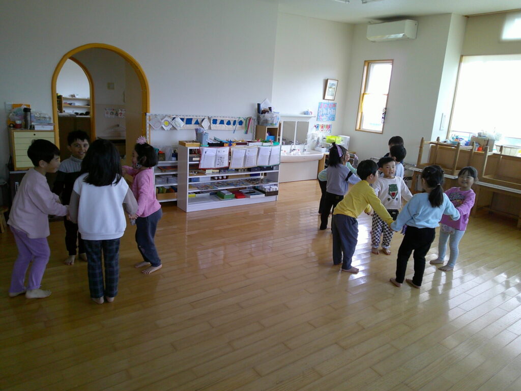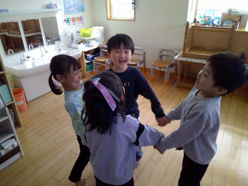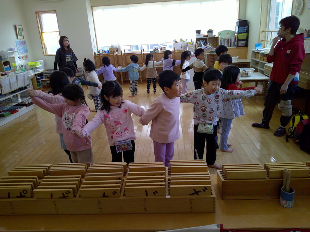 「なべなべそこぬけ」をしました。ルールを確認しながらチャレンジしましたよ💪人数が増えてくるとどうやってひっくりかえるのかが分からず苦戦していましたが、慣れてくるとスムーズに入ることが出来ていました。最後には全員でひっくりかえることが出来、バッチリでした✨