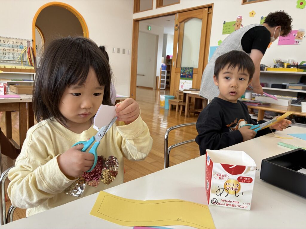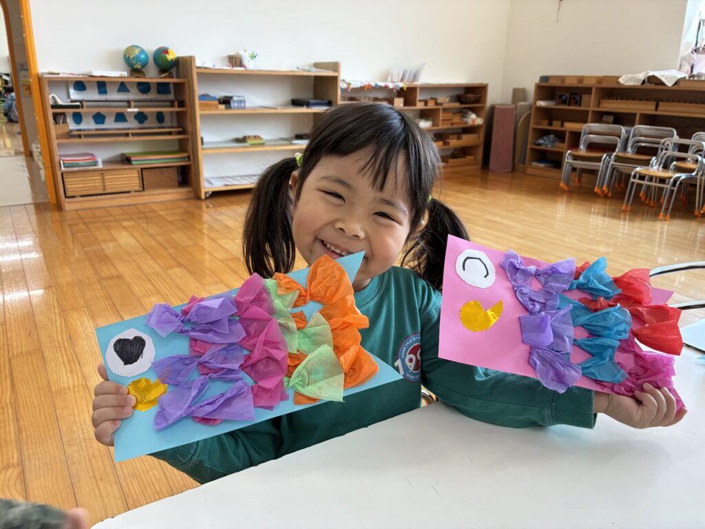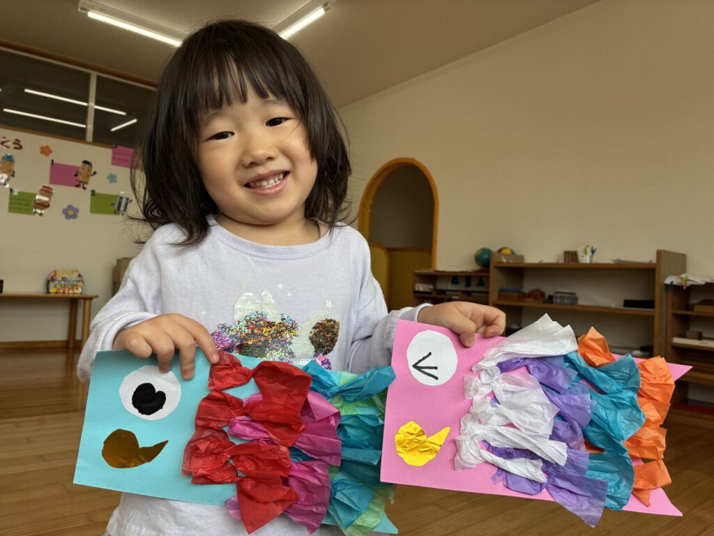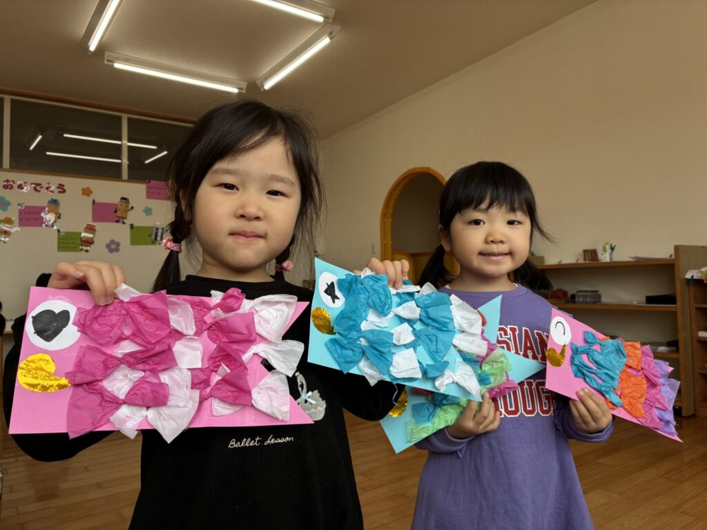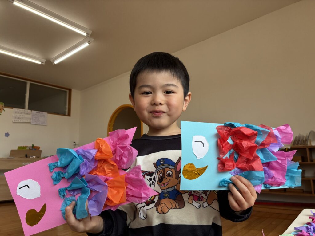 線の通りに切ったり、お花紙を使って鱗を作ったりと、お話しをしっかりと聞いて取り組む姿が素敵でした☺️