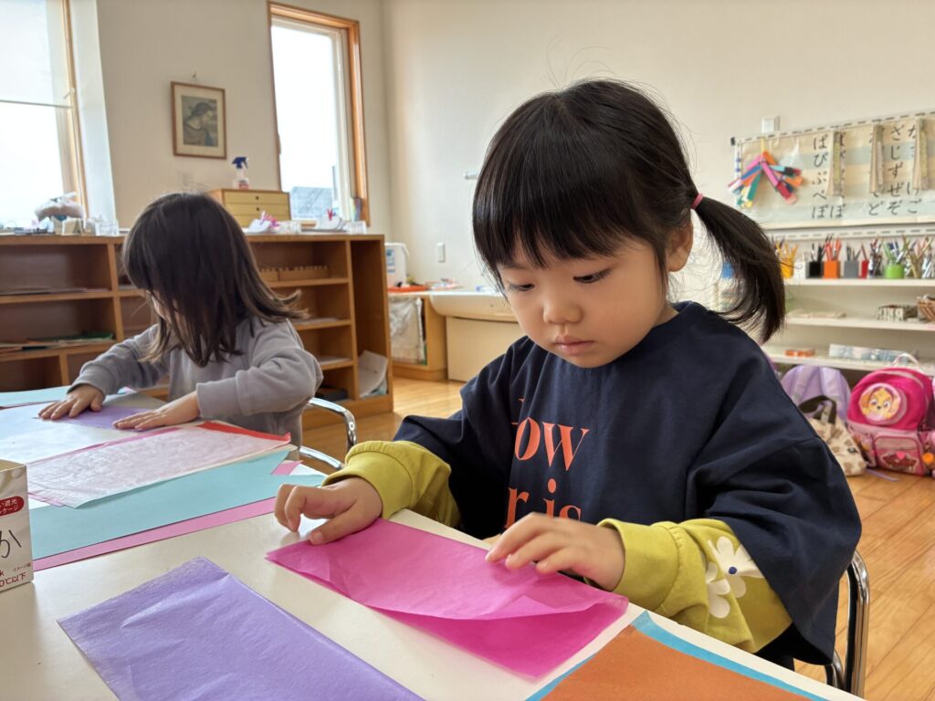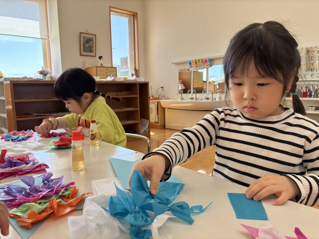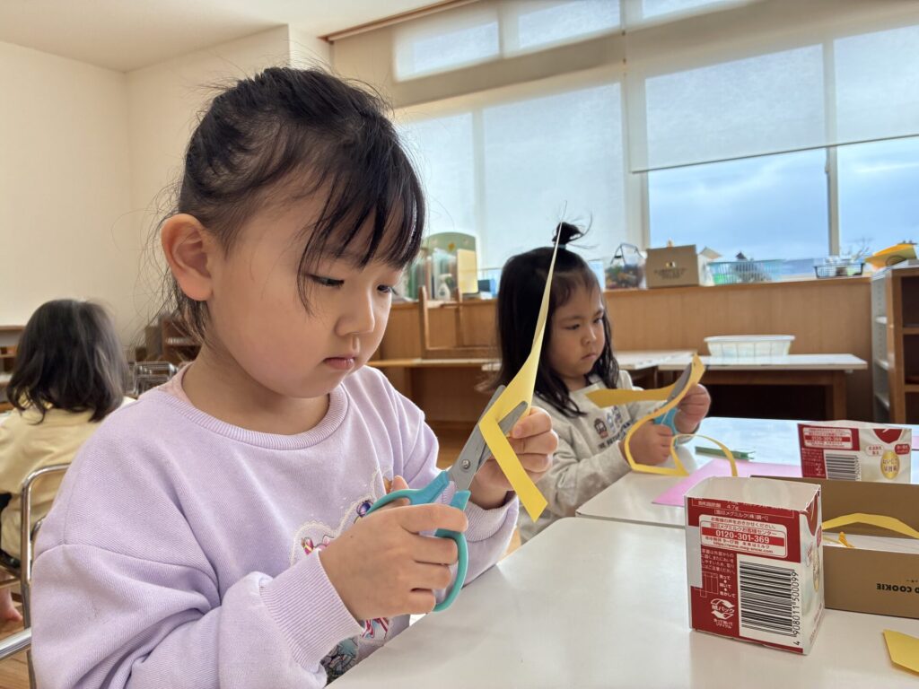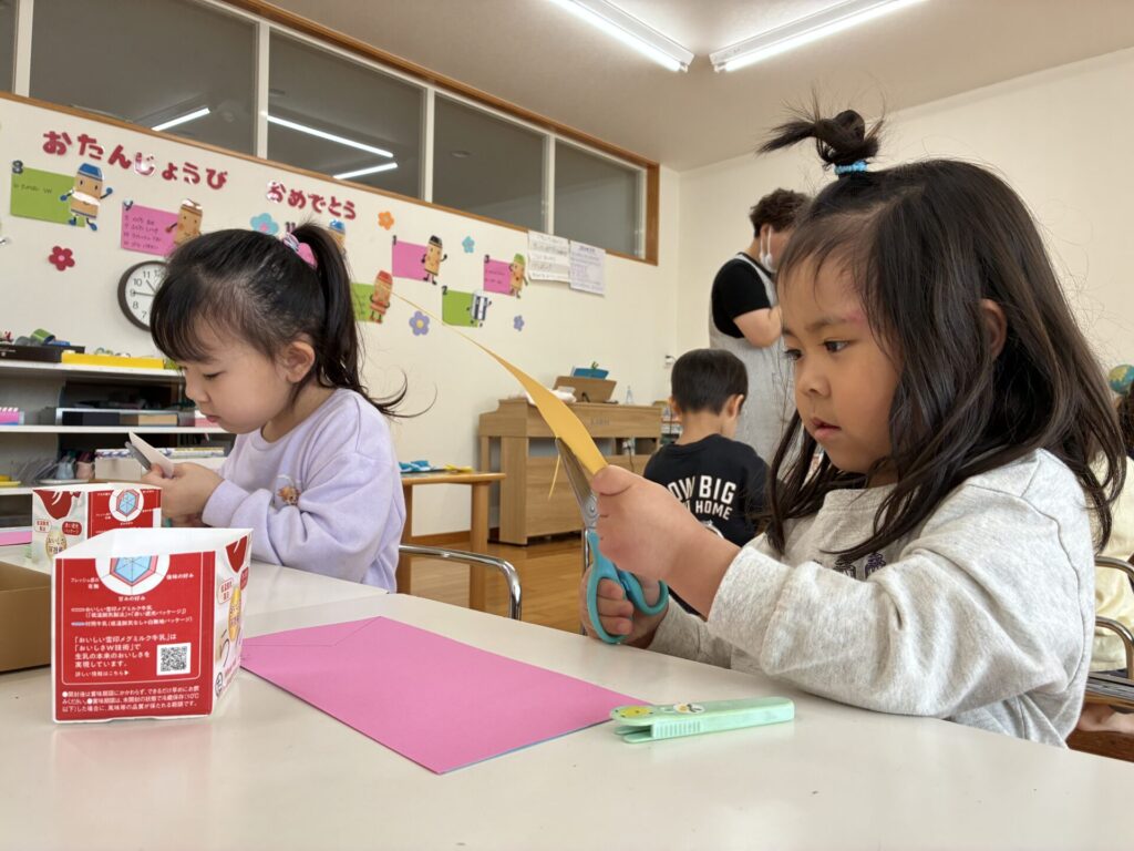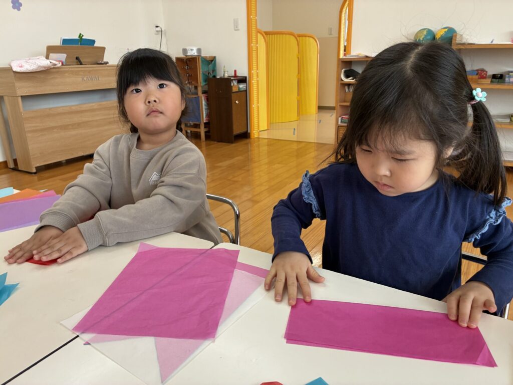 線の通りに切ったり、お花紙を使って鱗を作ったりと、お話しをしっかりと聞いて取り組む姿が素敵でした☺️
