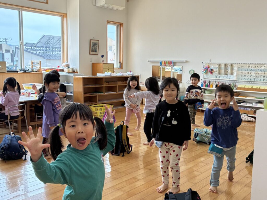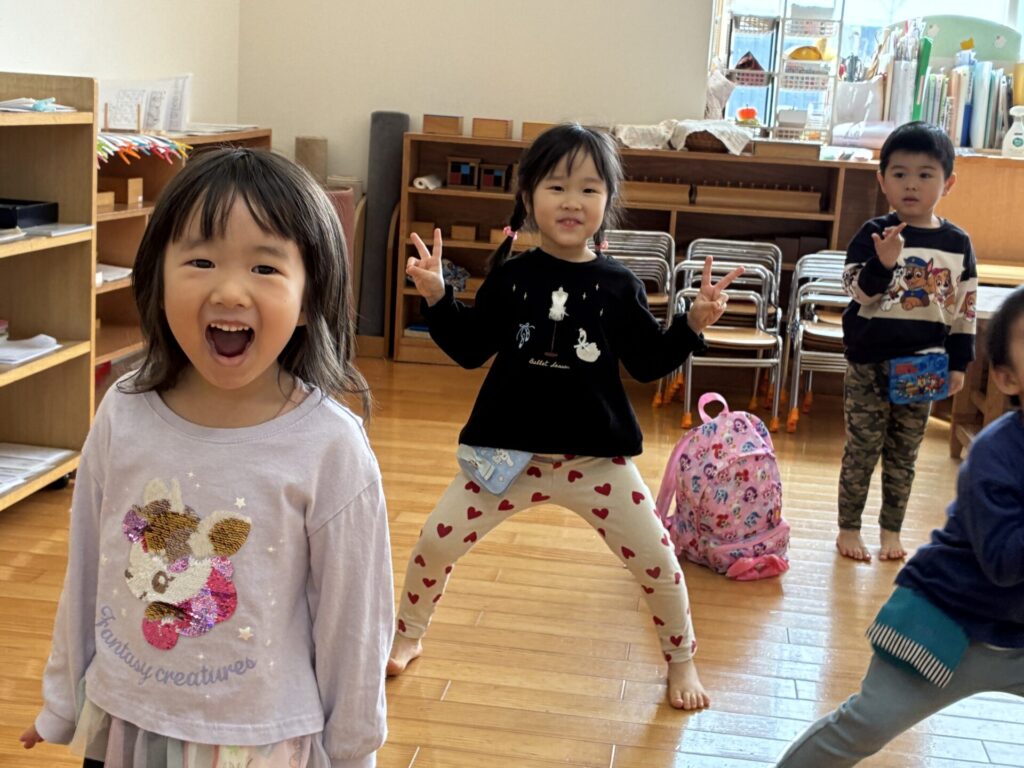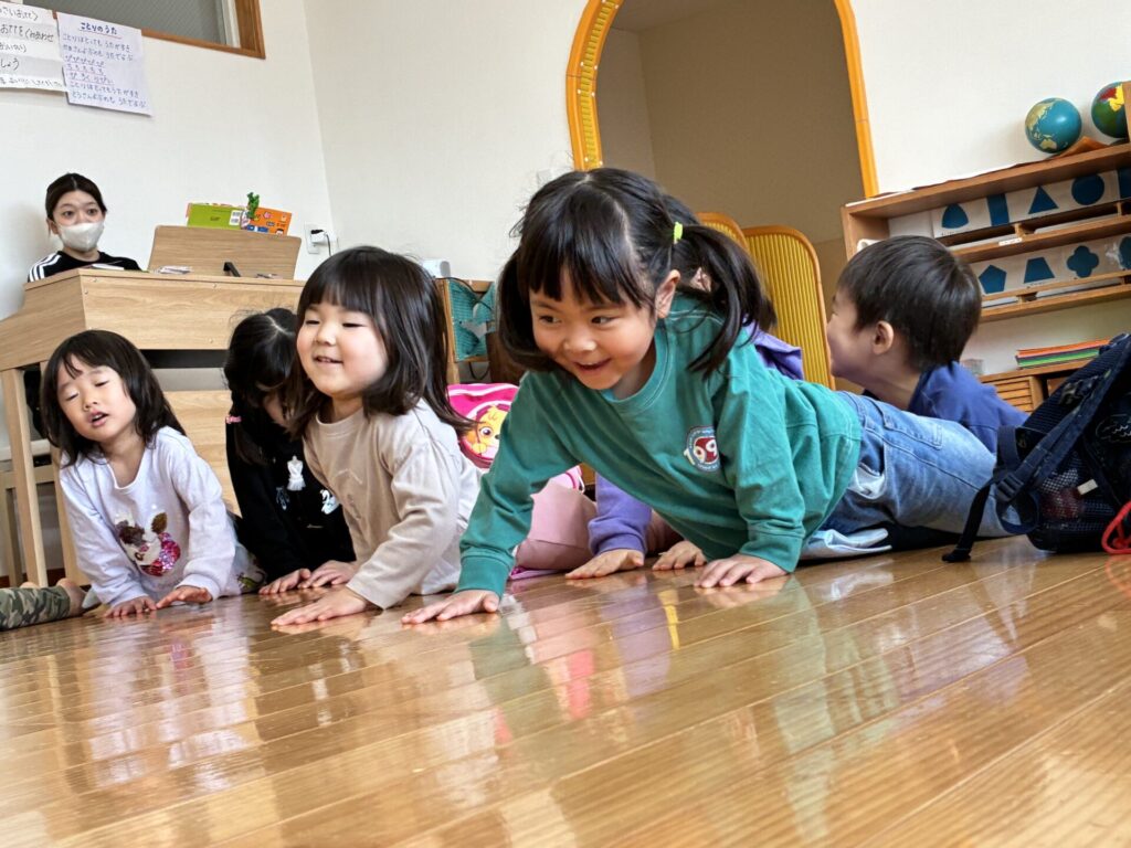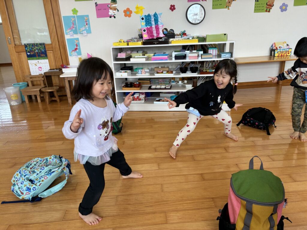 今日は、お部屋で1つゲームをしました!ピアノに合わせて、動物歩きしたり、スキップしたりしたのですがとっても良い笑顔で取り組んでくれましたよ😊