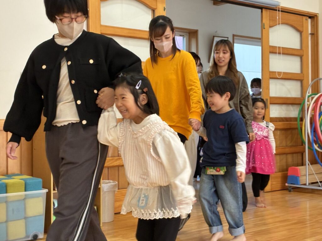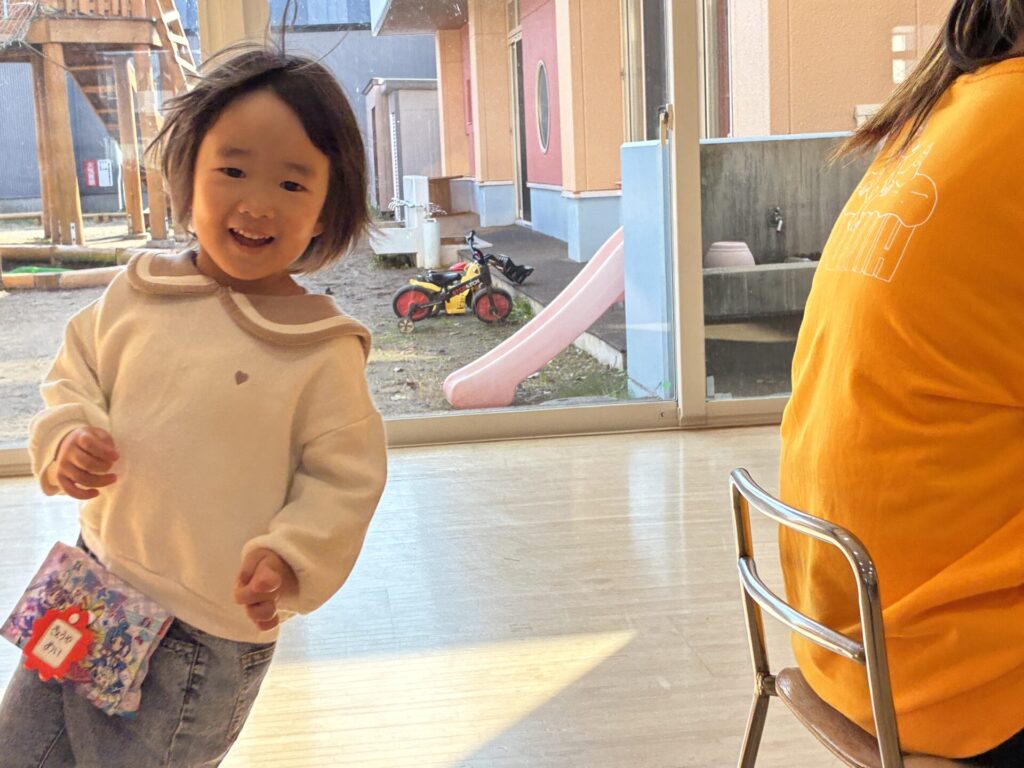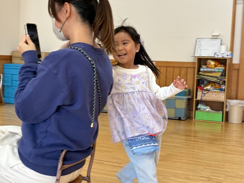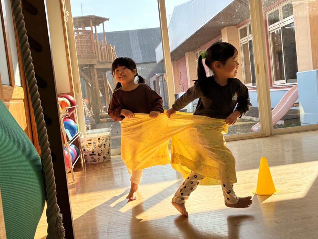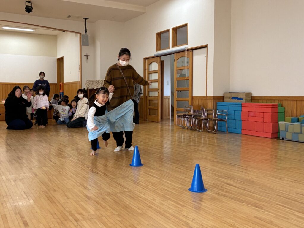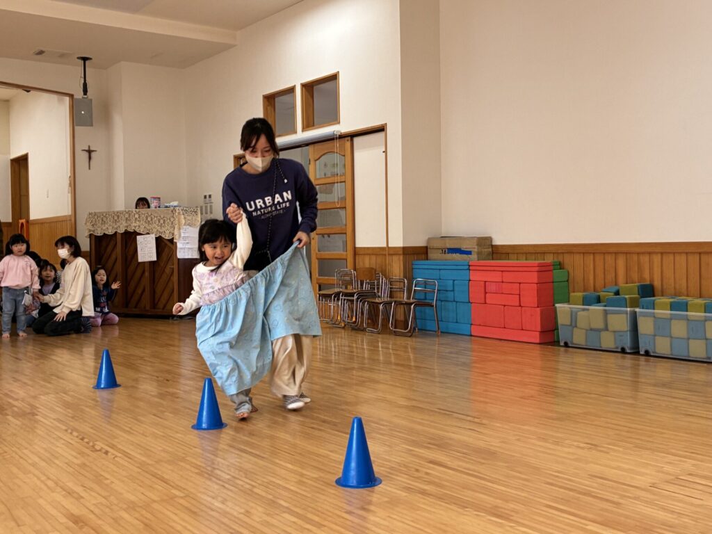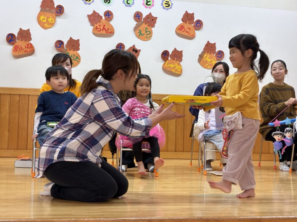次は楽しみにしていたゲームの時間!デカパン競争をしたりじゃんけん列車をしたり、ジャンプリレーをしたり、今回は3つもゲームをしました!青チームと黄色チームに分れて勝負し、引き分けに終わりました!!ジャンケン列車は大盛り上がり! どのゲームも全力で楽しんでいた子ども達でした🔥