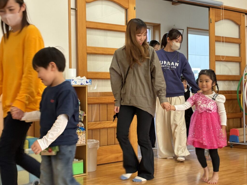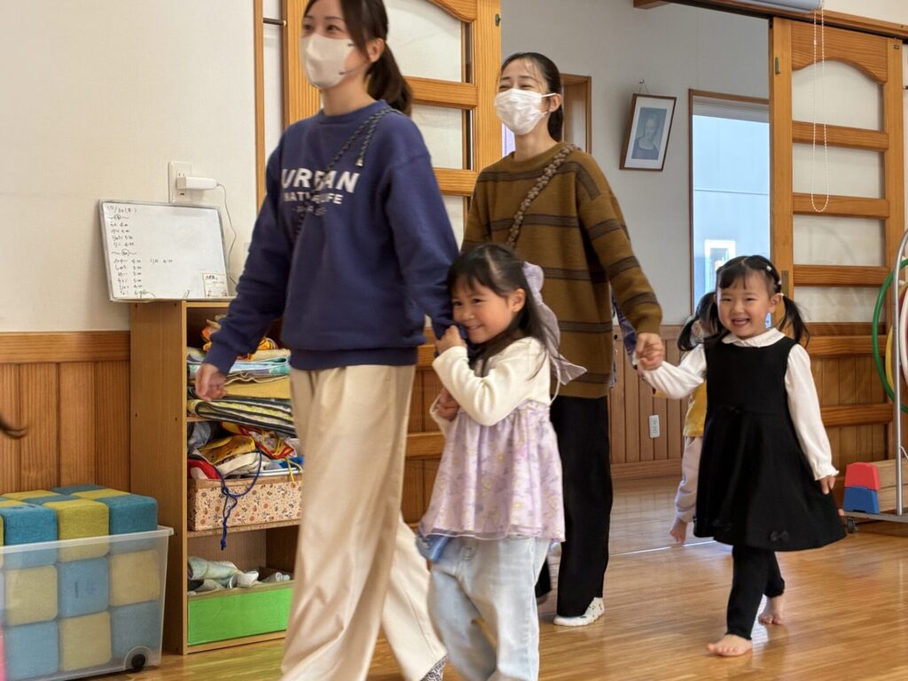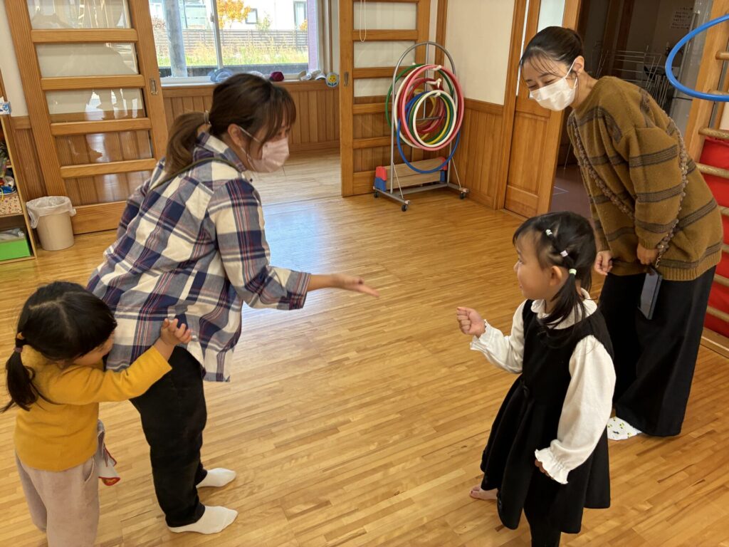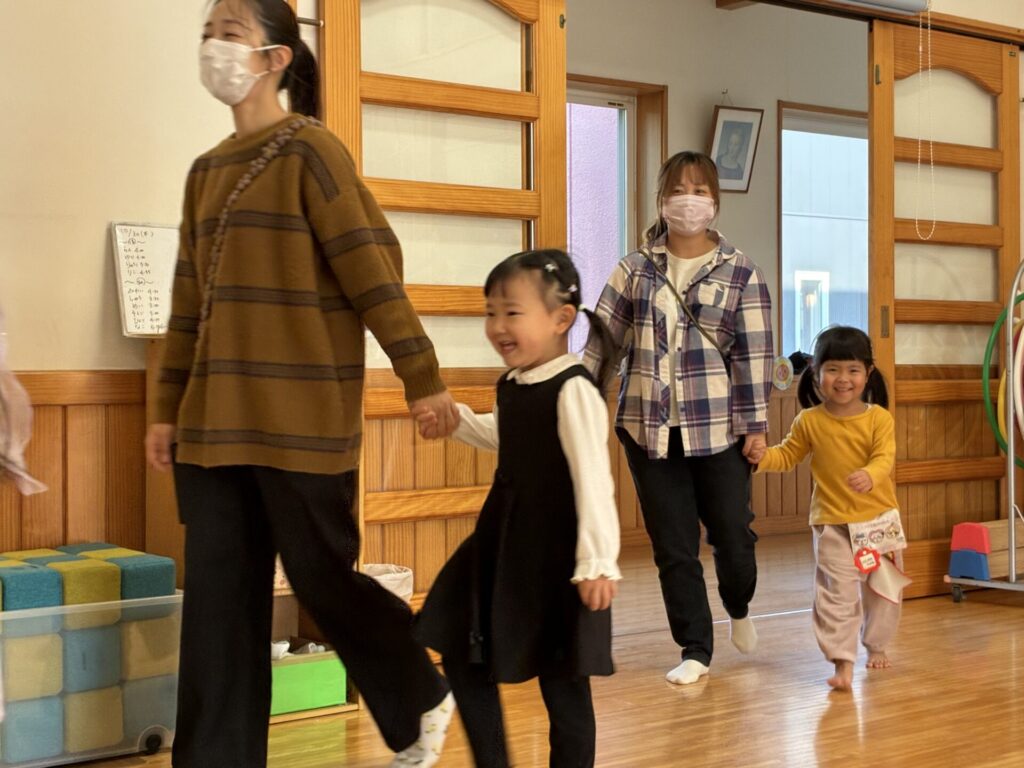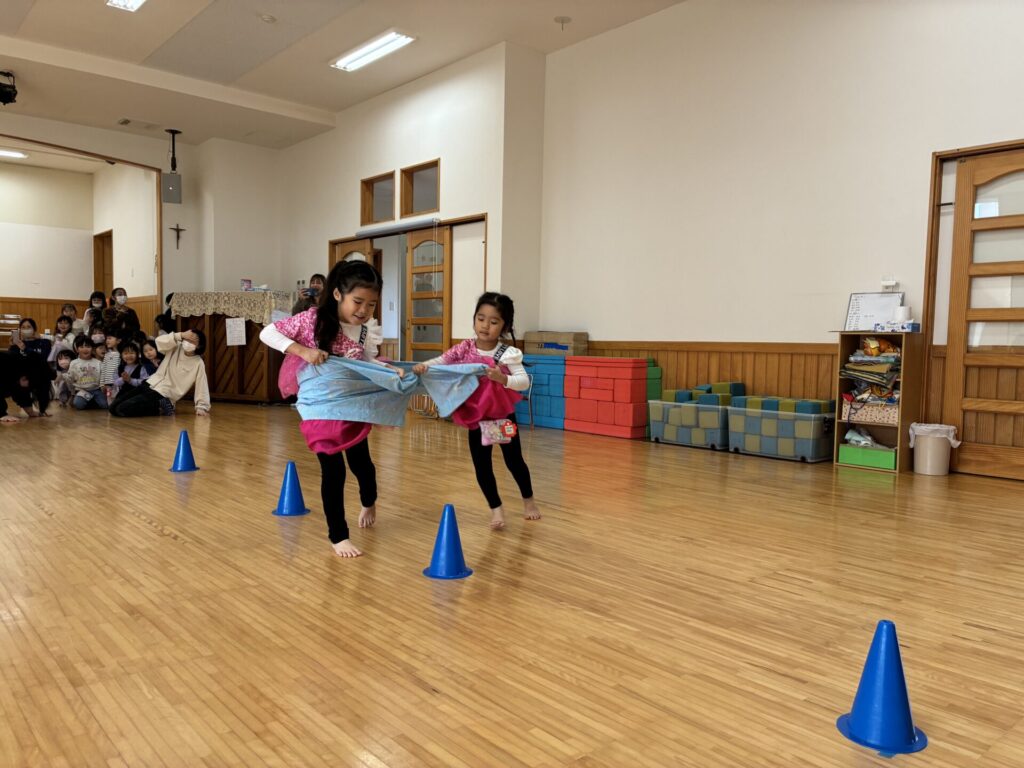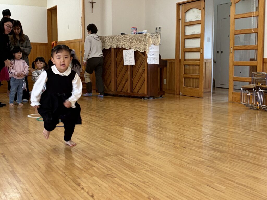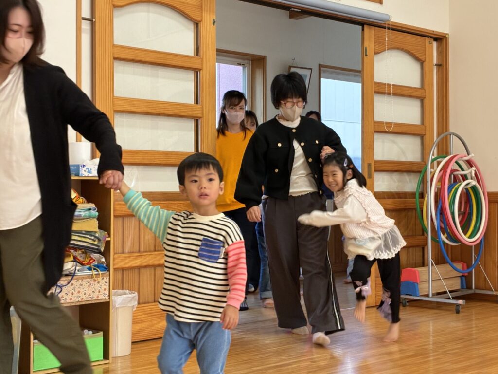 次は楽しみにしていたゲームの時間!デカパン競争をしたりじゃんけん列車をしたり、ジャンプリレーをしたり、今回は3つもゲームをしました!青チームと黄色チームに分れて勝負し、引き分けに終わりました!!ジャンケン列車は大盛り上がり! どのゲームも全力で楽しんでいた子ども達でした🔥