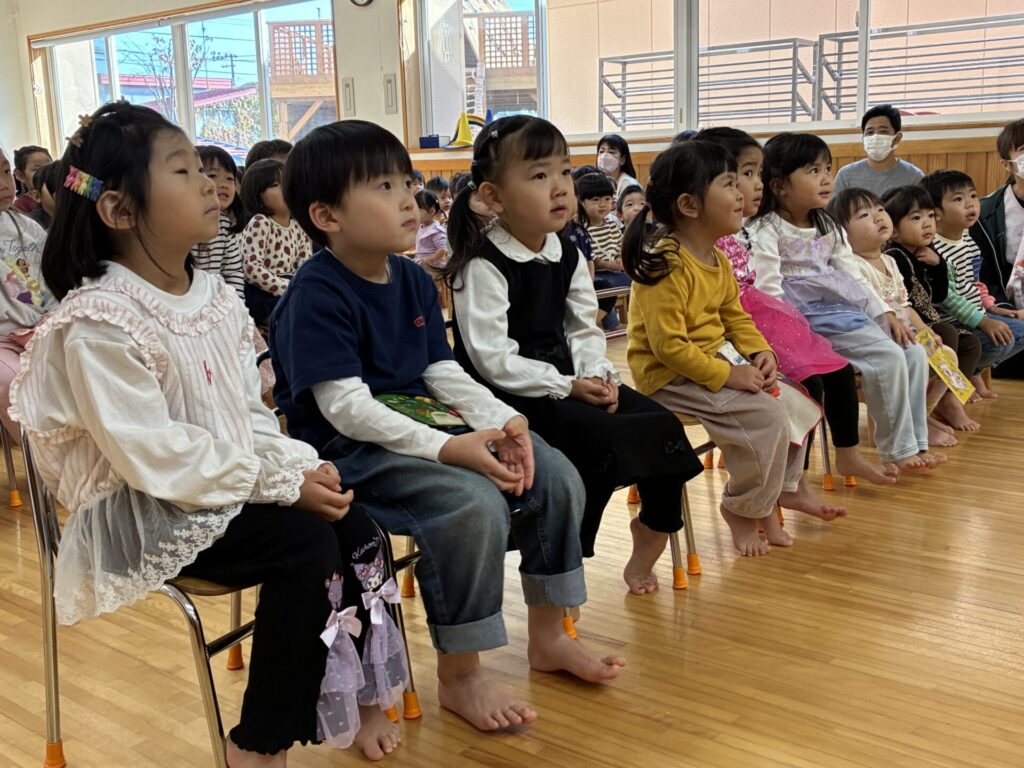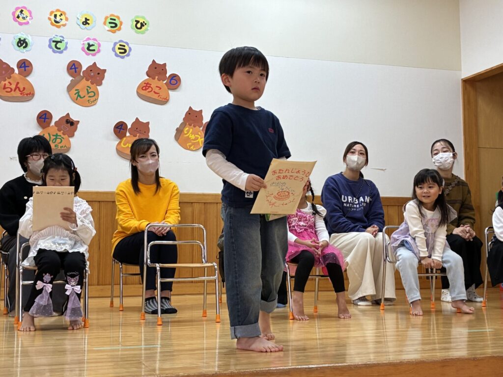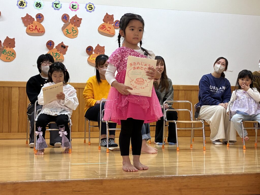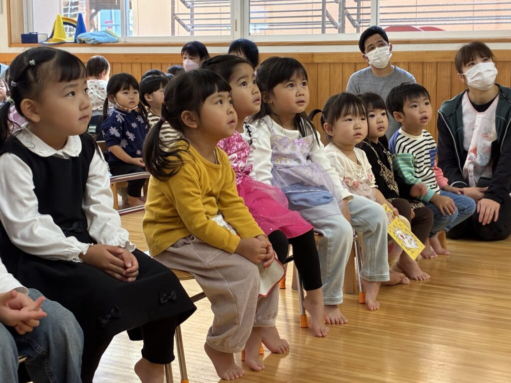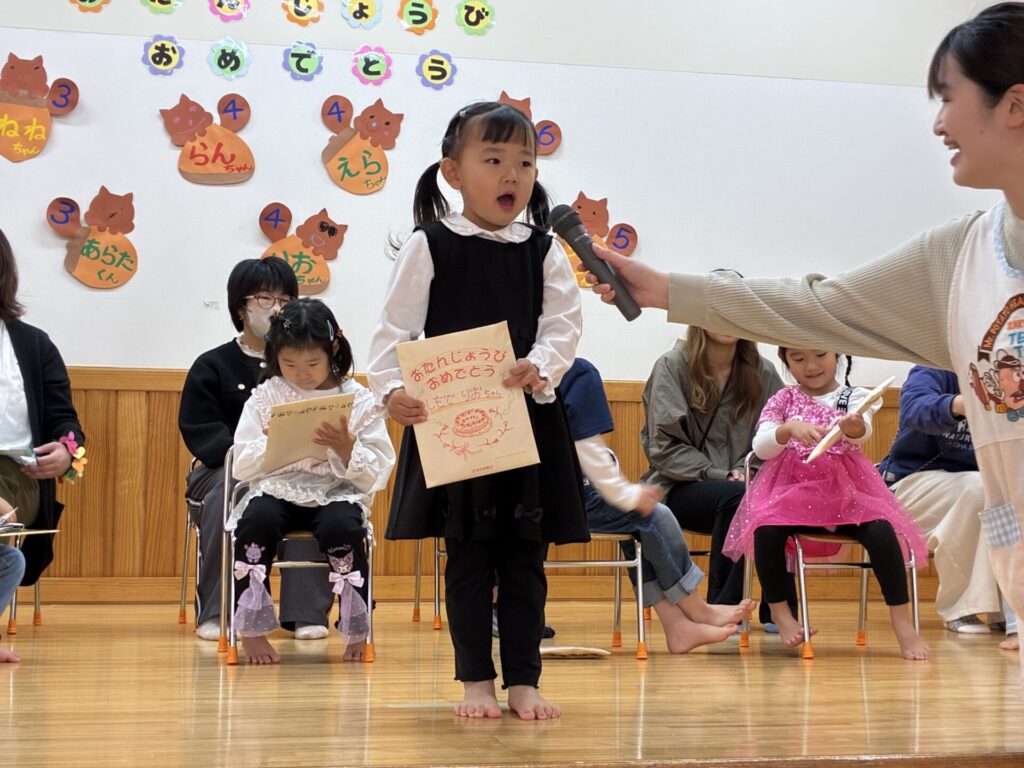今日は10月のお誕生会があり、以上児さんは6名の参加でした!とってもニコニコで楽しそうですね😊