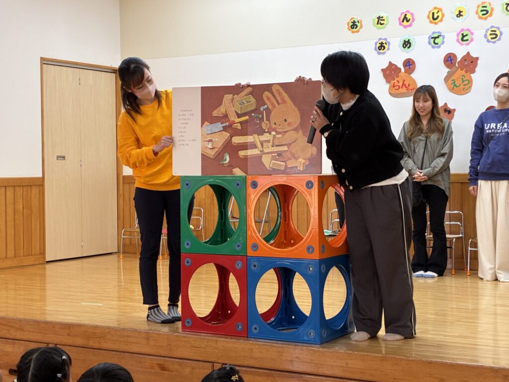 お父さんお母さんが大型絵本の読み聞かせをしてくれました!みんなの大好きな「どうぞのいす」✨お父さんお母さんが読んでくれるとより面白いよね👏