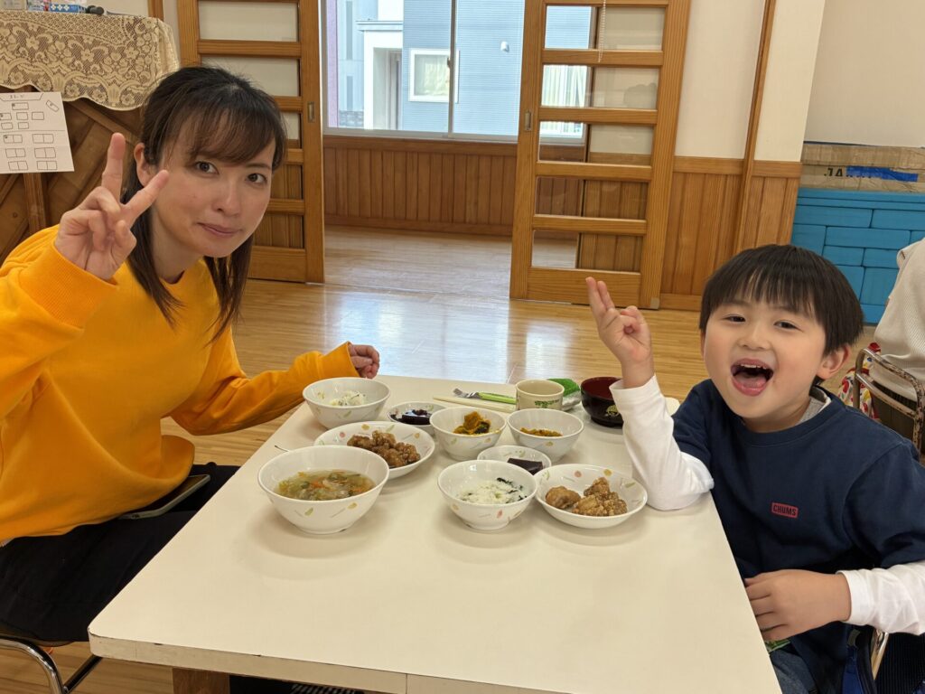 最後はお母さんと一緒に給食を食べました🥄なかなかお母さんと一緒に幼稚園で給食を食べる機会が無いので、子ども達も大喜びでした🙌やっぱり、お母さんと一緒に食べる給食はいつもより美味しいですよね😋