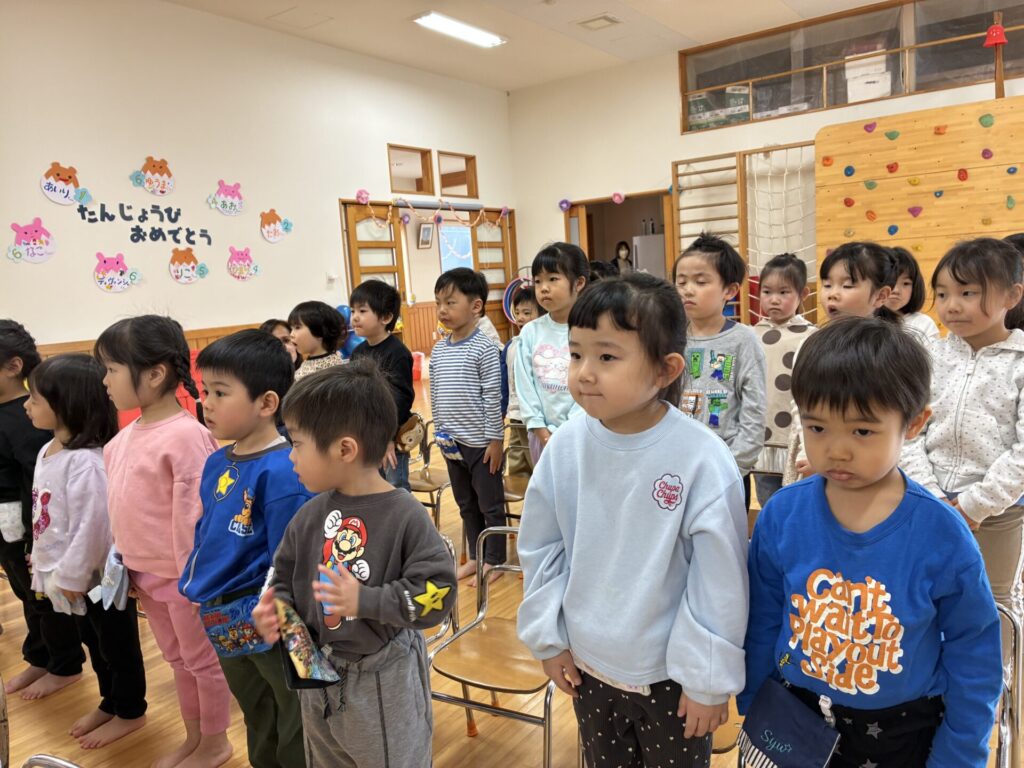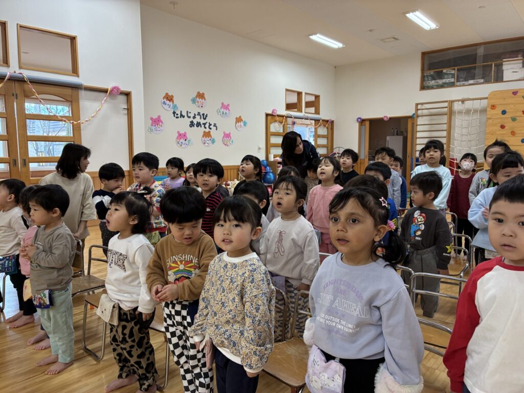 今日は4月生まれのお友達のお誕生会がありました👏みんな、お父さんお母さんと手を繋いで張り切って入場してくれましたよ!!