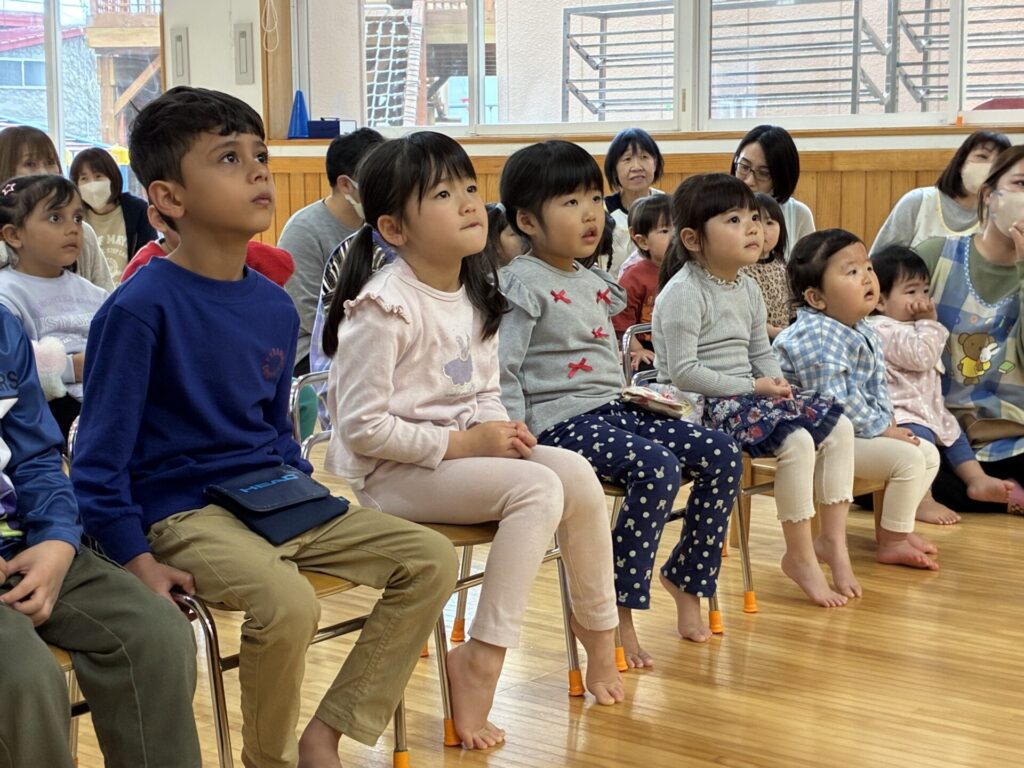 みんなから歌のプレゼントをしたり、お母さん方が読み聞かせをしてくれました!「しろくまのパンツ」を読み聞かせしてくれました🐻「これはウサギさんのだ!」「あのパンツ誰だろう…?」と真剣に見てくれていましたよ😊