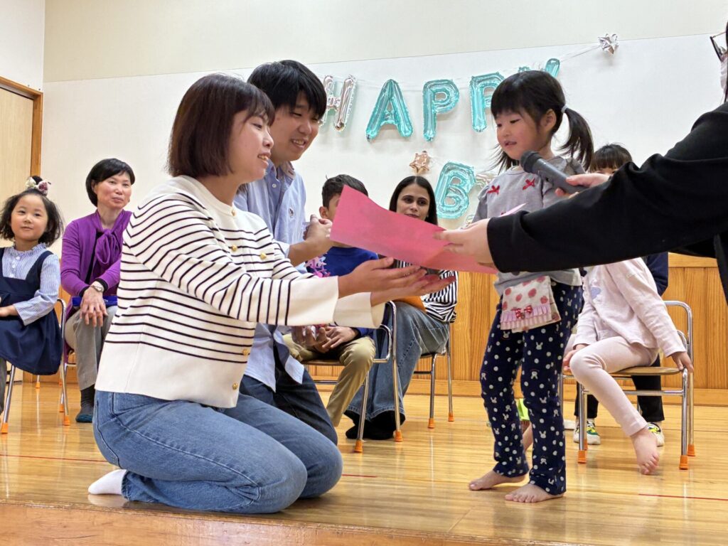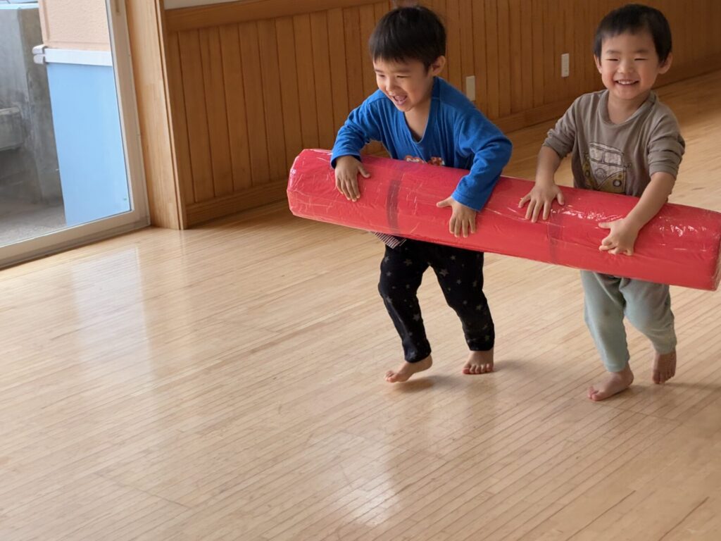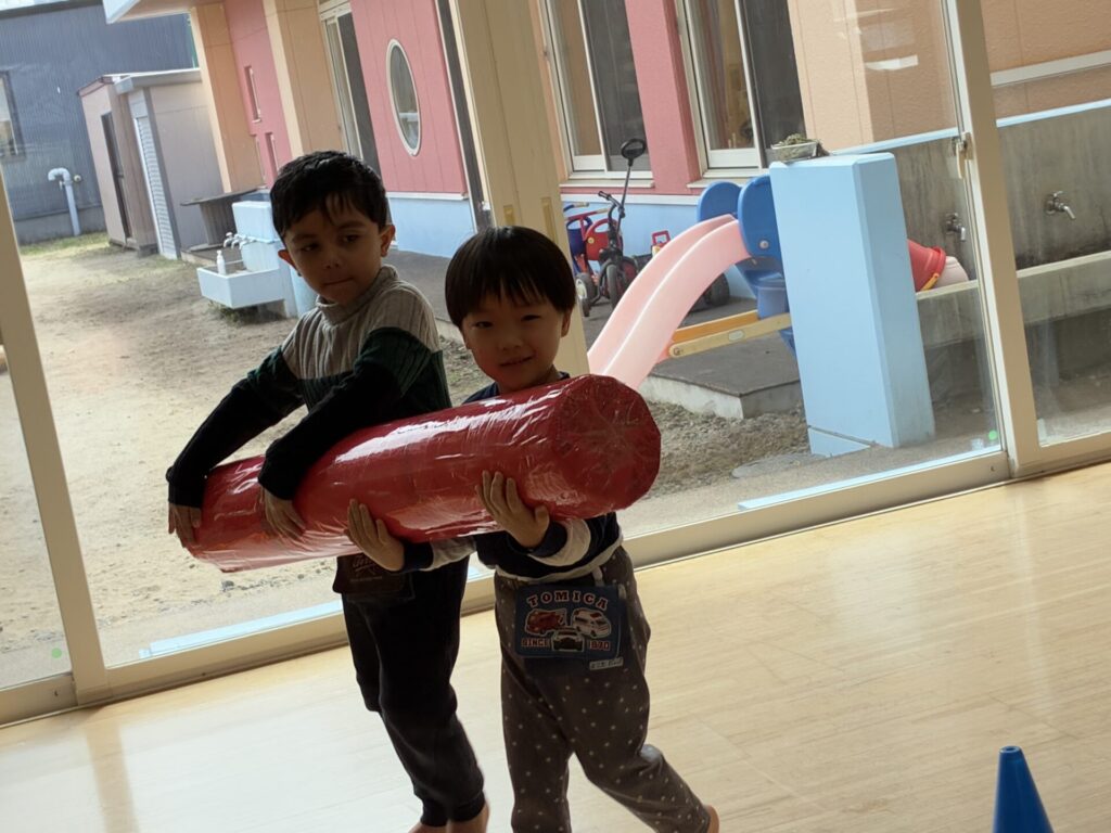 幼稚園からプレゼントを貰いました🎁ちょっぴり緊張していた子ども達ですが、「ありがとう!」とプレゼントを受け取ってくれました✨