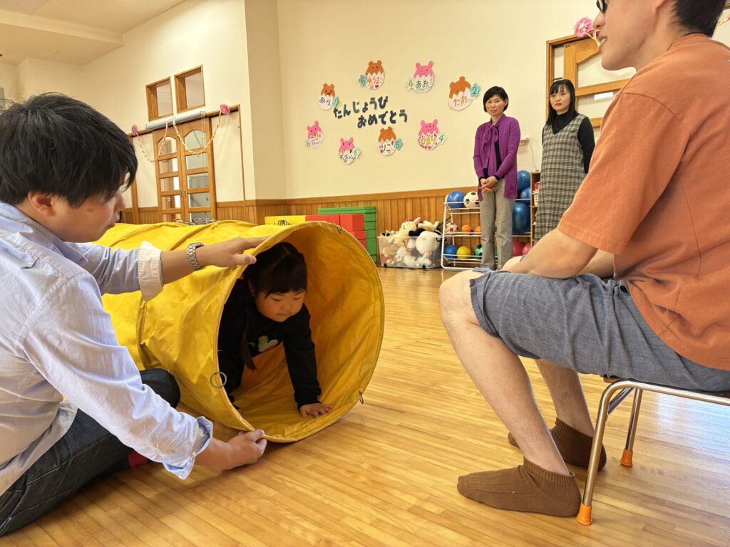 みんな楽しみにしていたゲームの時間です!トンネルくぐりゲームやビックバトンゲームをしました🌟どちらのゲームも接戦で、大盛り上がりしましたよ🔥