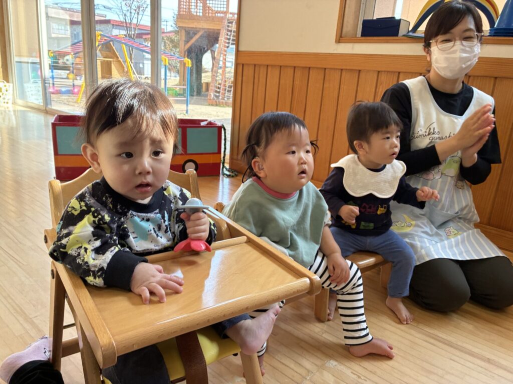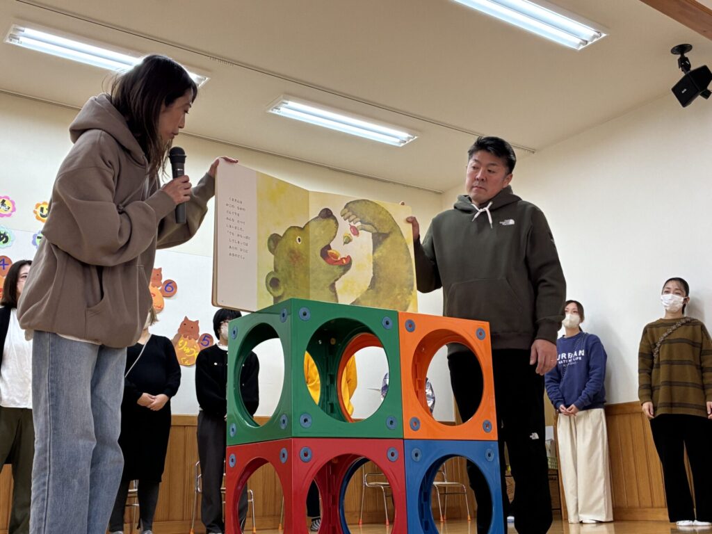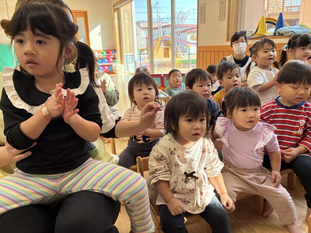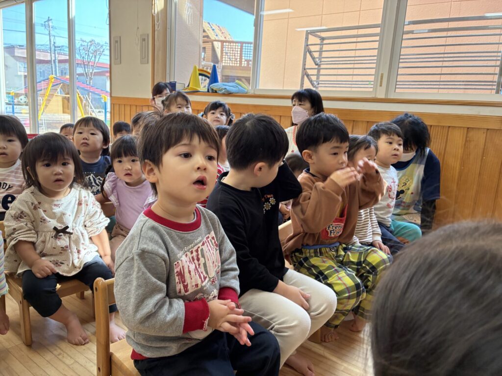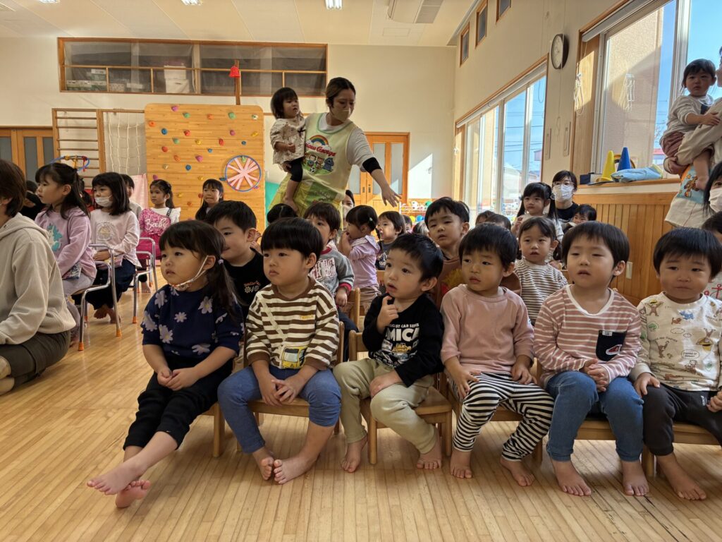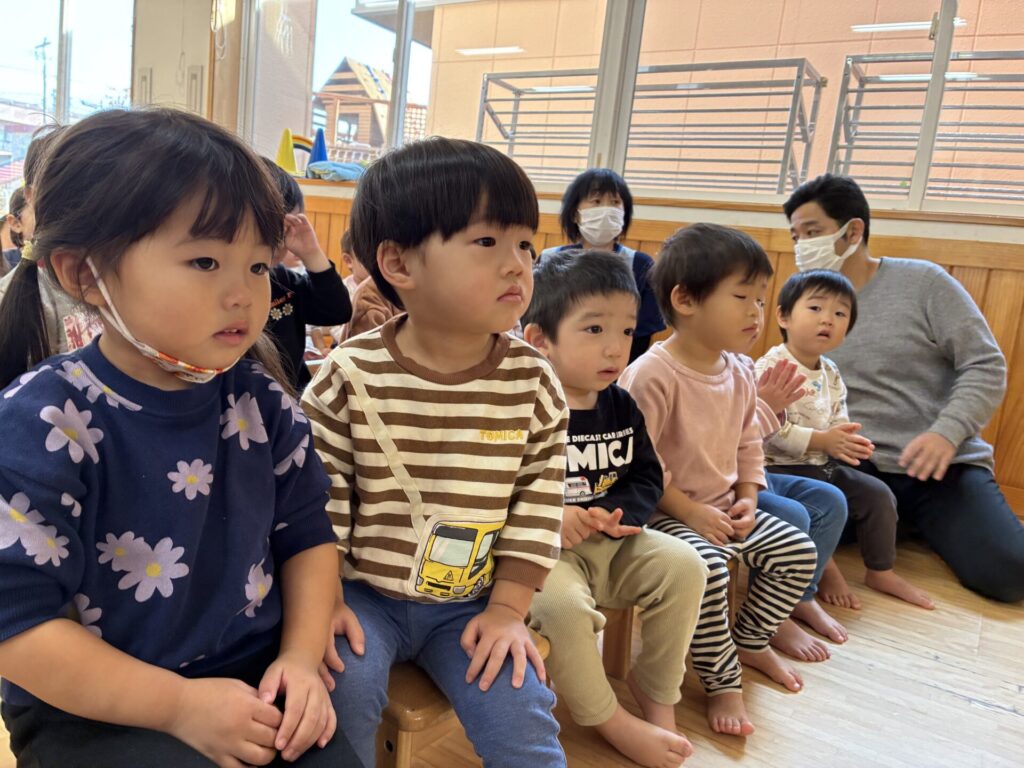お父さん、お母さんが読んでくれる絵本もとっても集中していていた子どもたちです😊たくさん動物が出てきてたのしそうでしたね🐻🐿️🌰