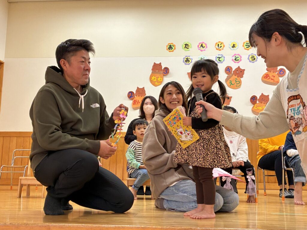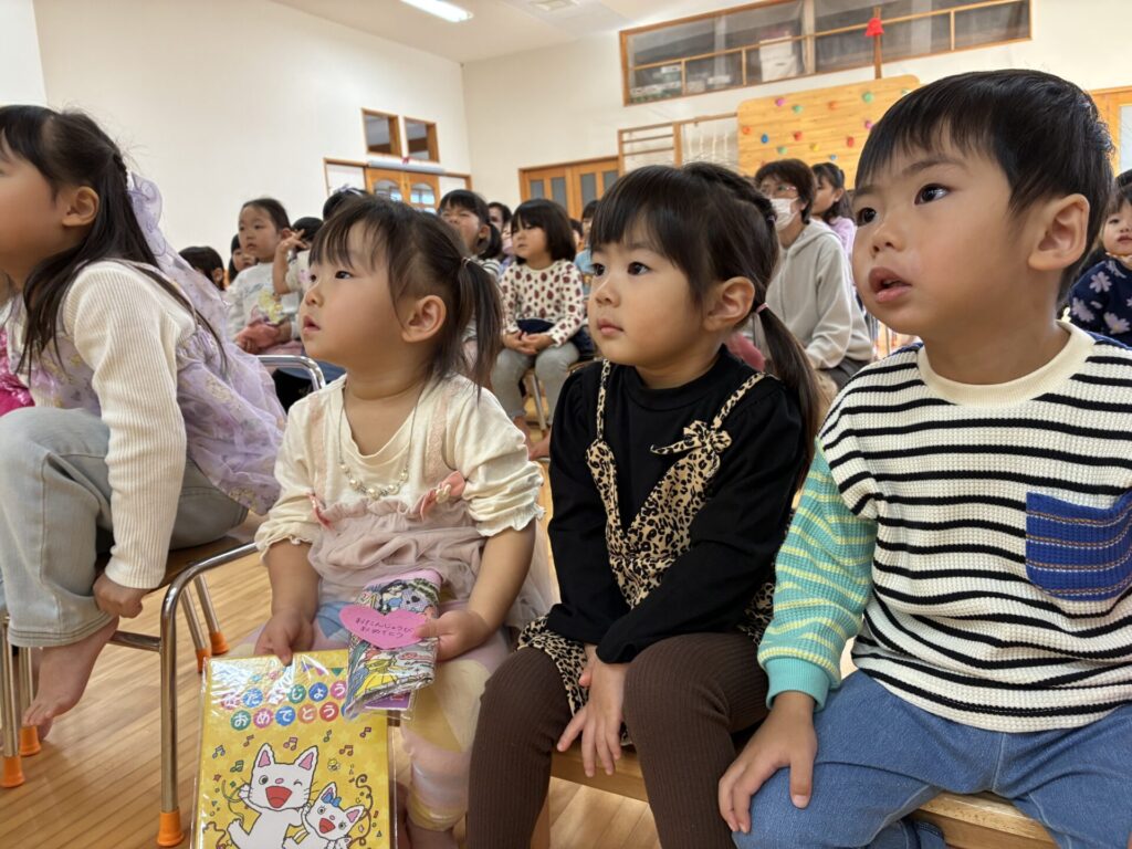 一生懸命作ったプレゼントを照れながらも大好きと言って渡したり、「ありがとう」と言えたり、とても素敵でしたね☺️✨お誕生日ではない子どもたちも、拍手をしたり、「おめでとうございます」と大きな声で言っていたりと楽しむ子どもたちです✨