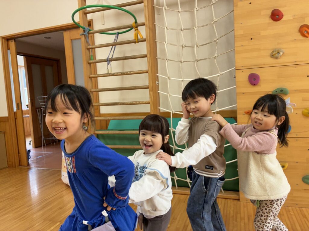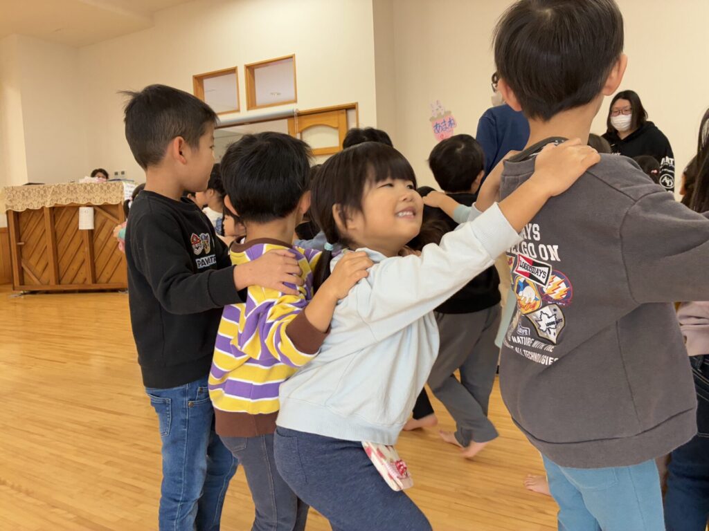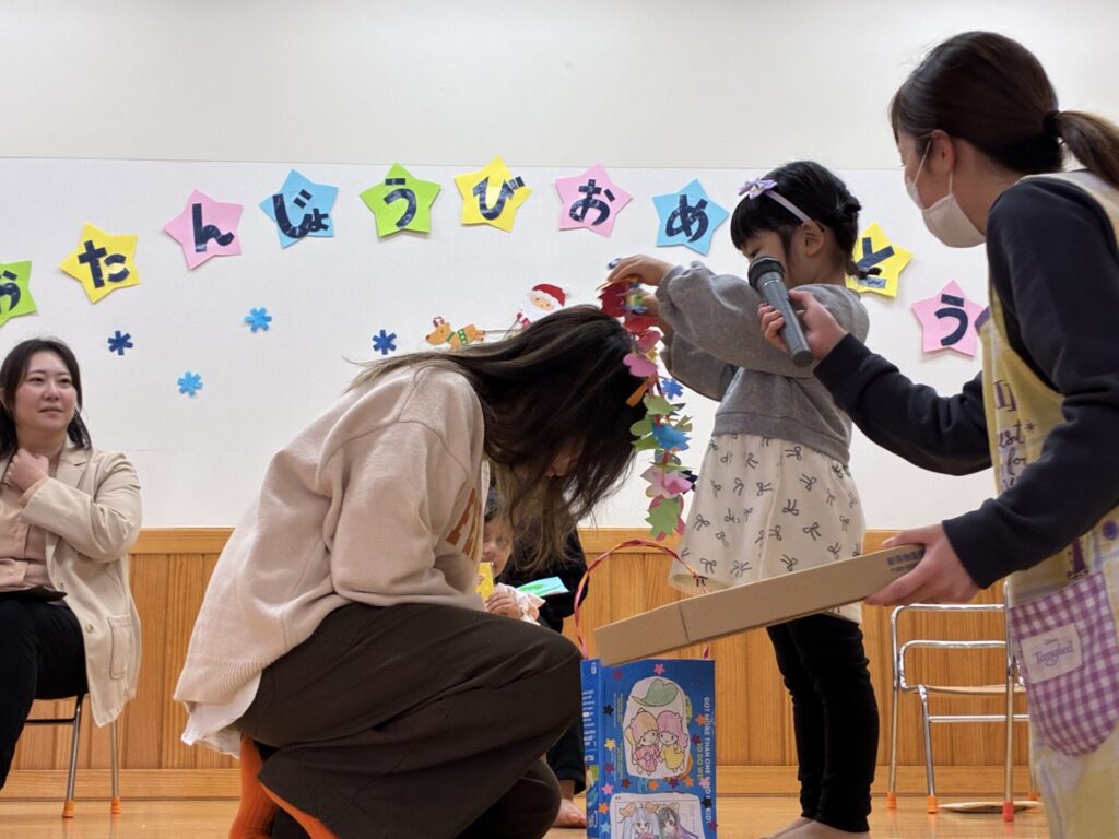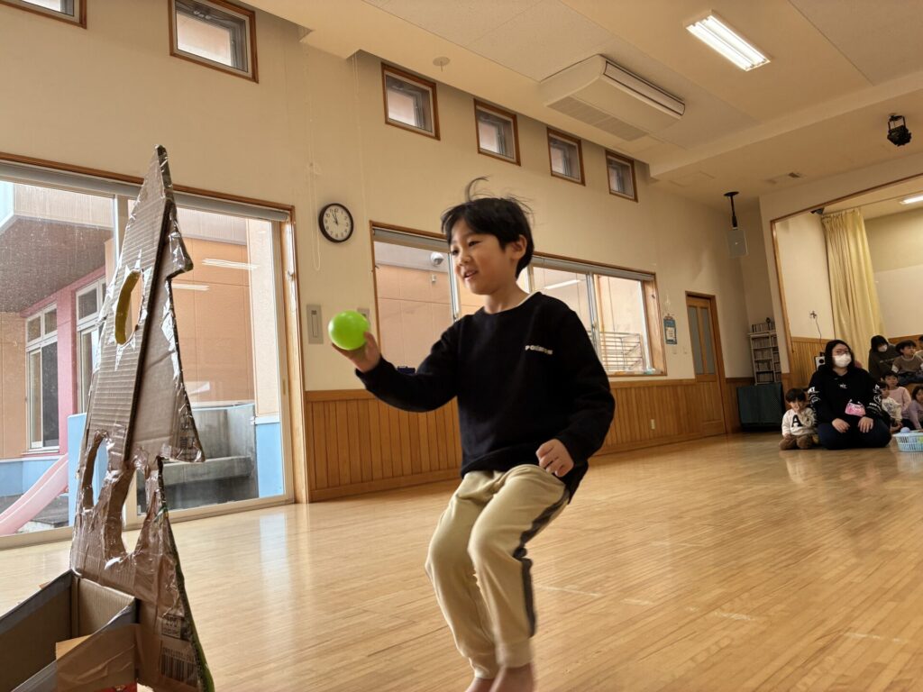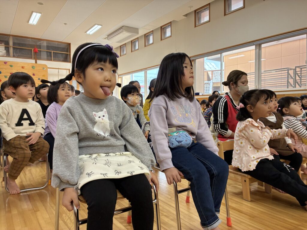 絵本の後は3つのゲームをしました。みんな勝ちたい思いが強く一生懸命でした!応援にも力が入ります!ホールに「頑張れ~」の声が響きました。