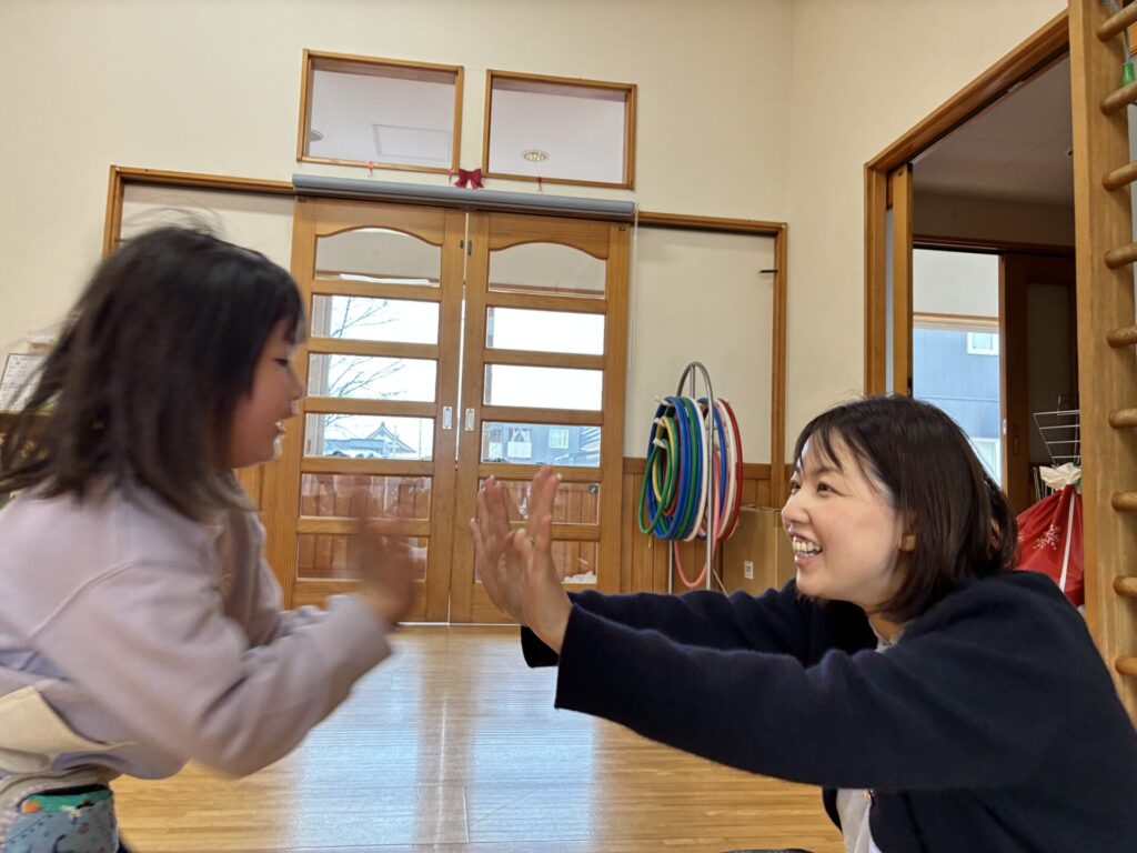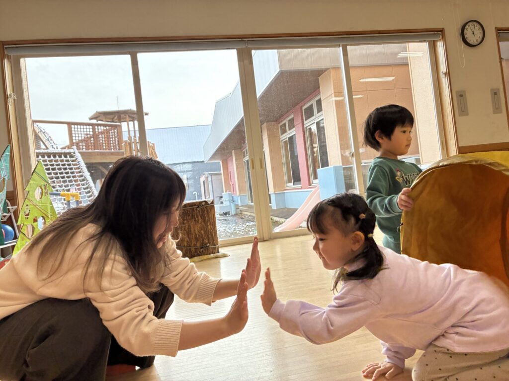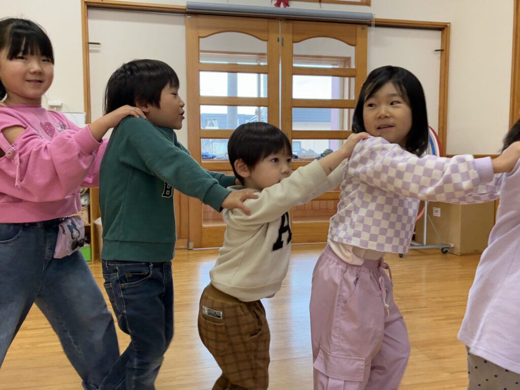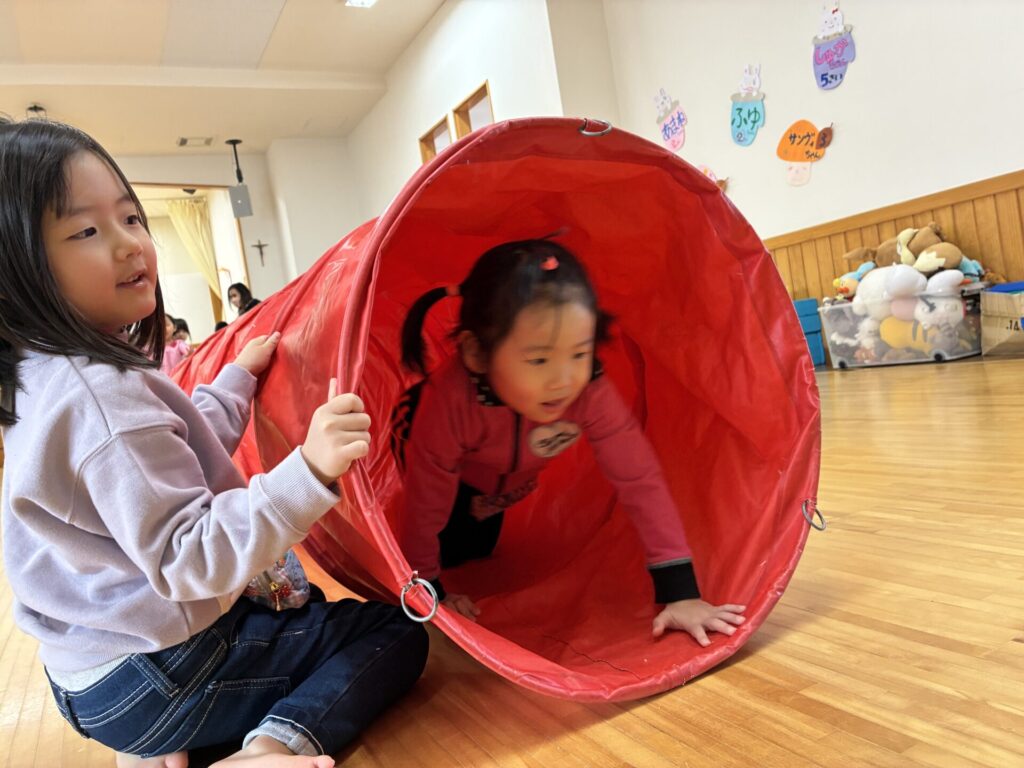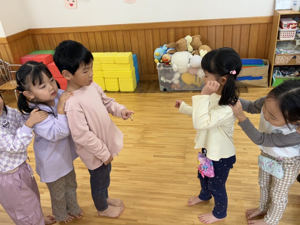 絵本の後は3つのゲームをしました。みんな勝ちたい思いが強く一生懸命でした!応援にも力が入ります!ホールに「頑張れ~」の声が響きました。