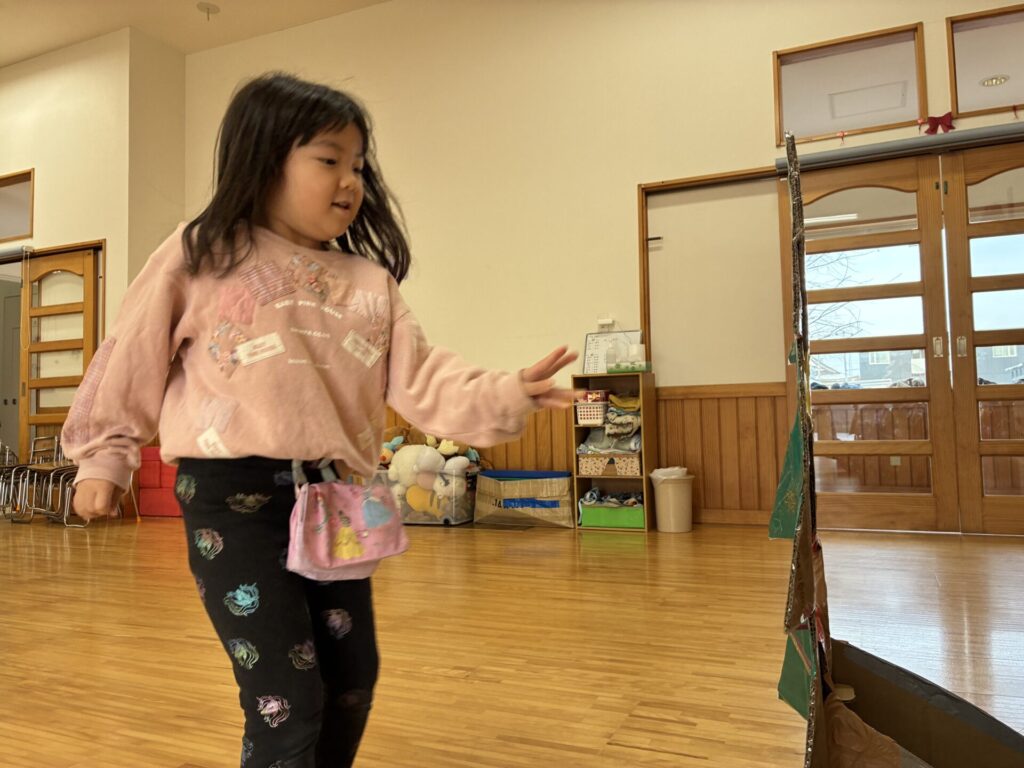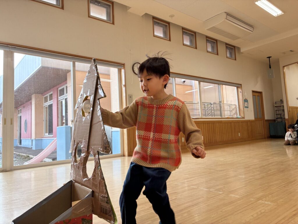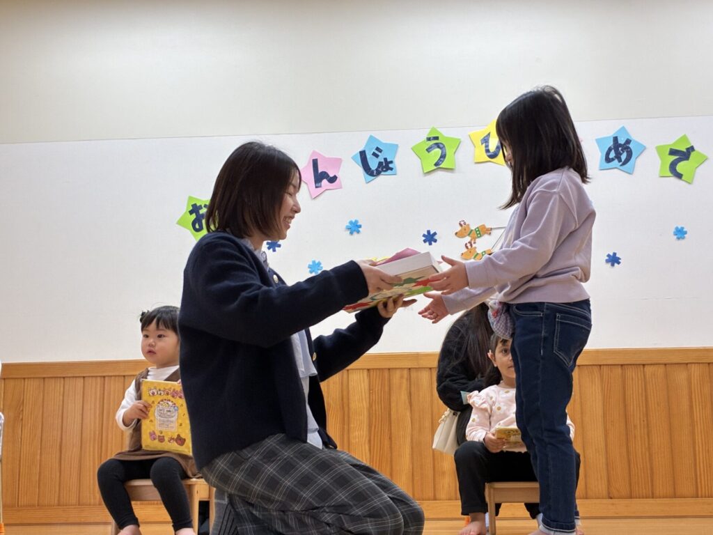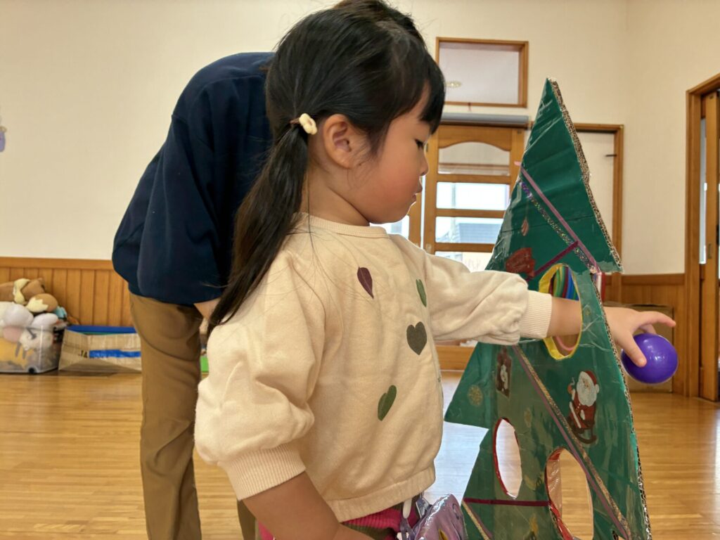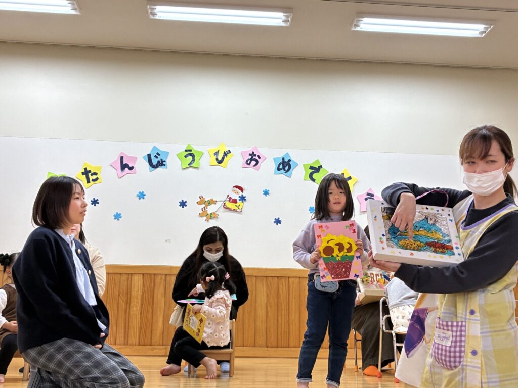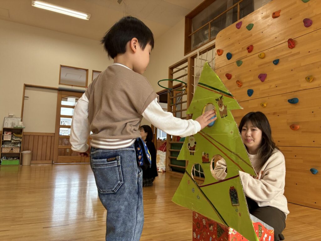 12月は「まどからおくりもの」の絵本を読んでいただきました。みんなのところにサンタさんが来るのが楽しみですね!