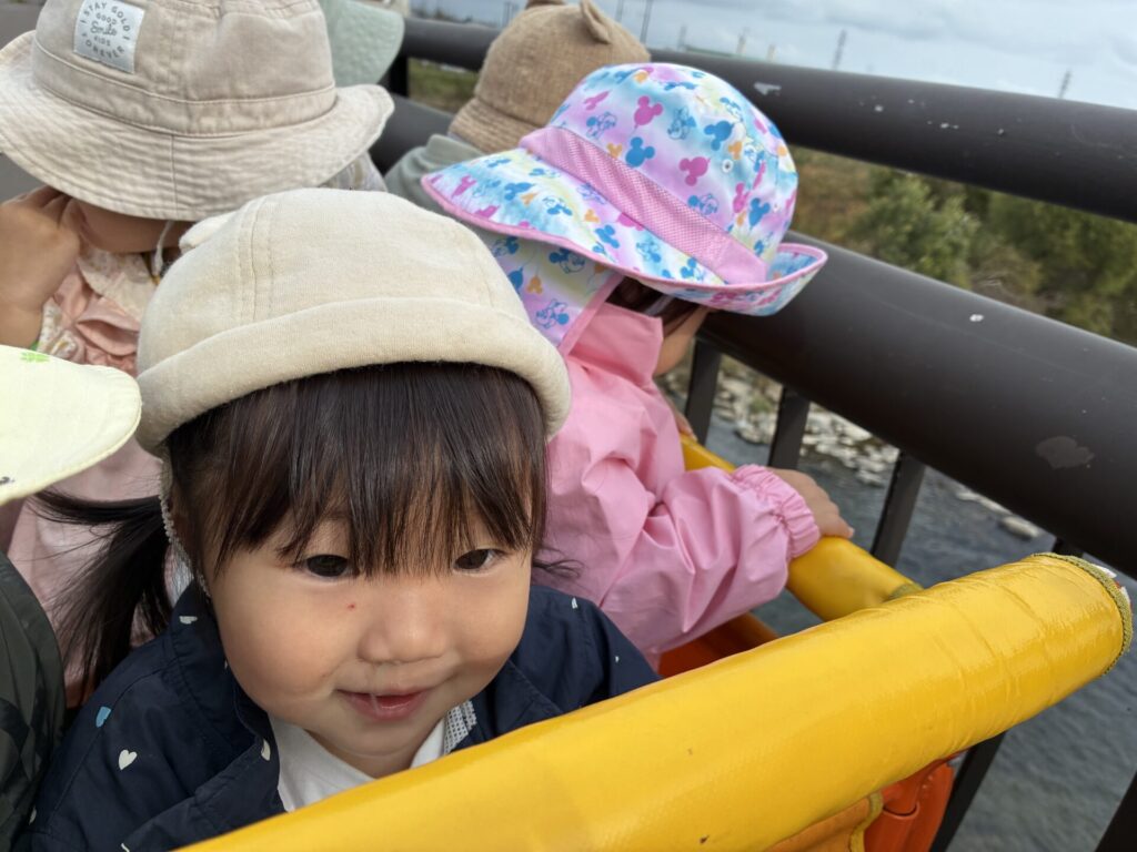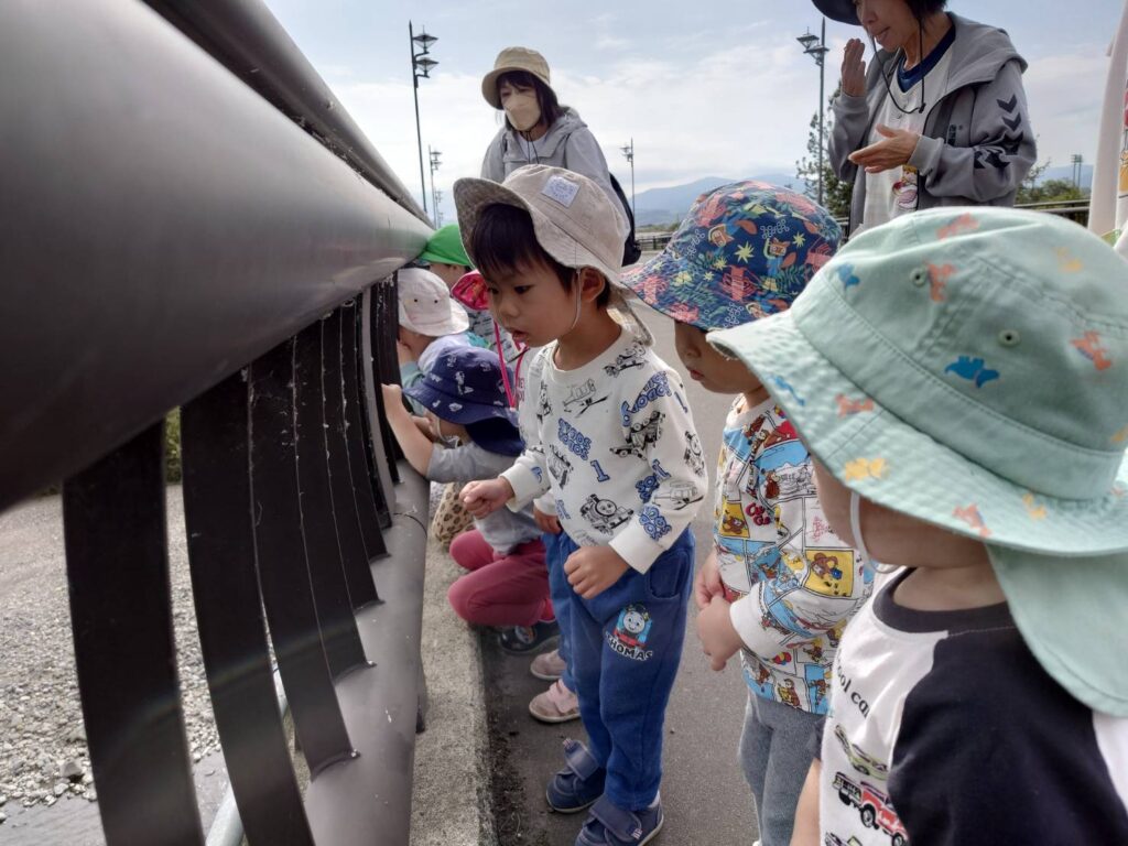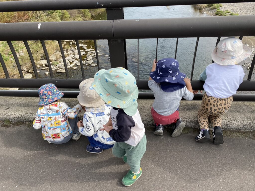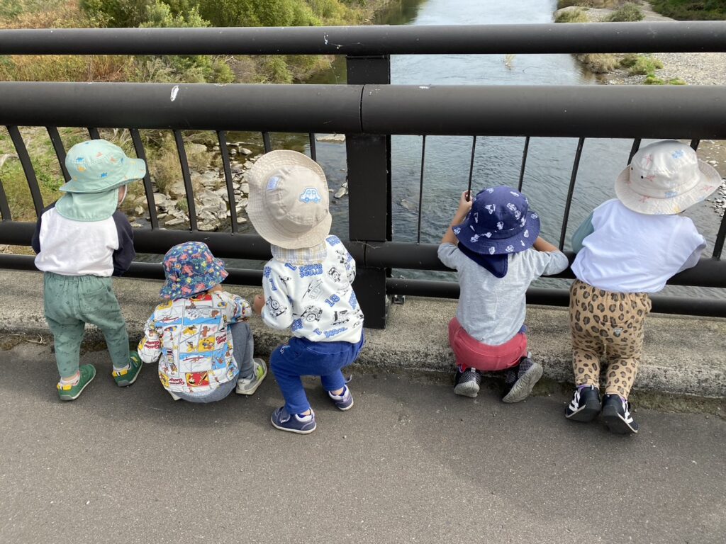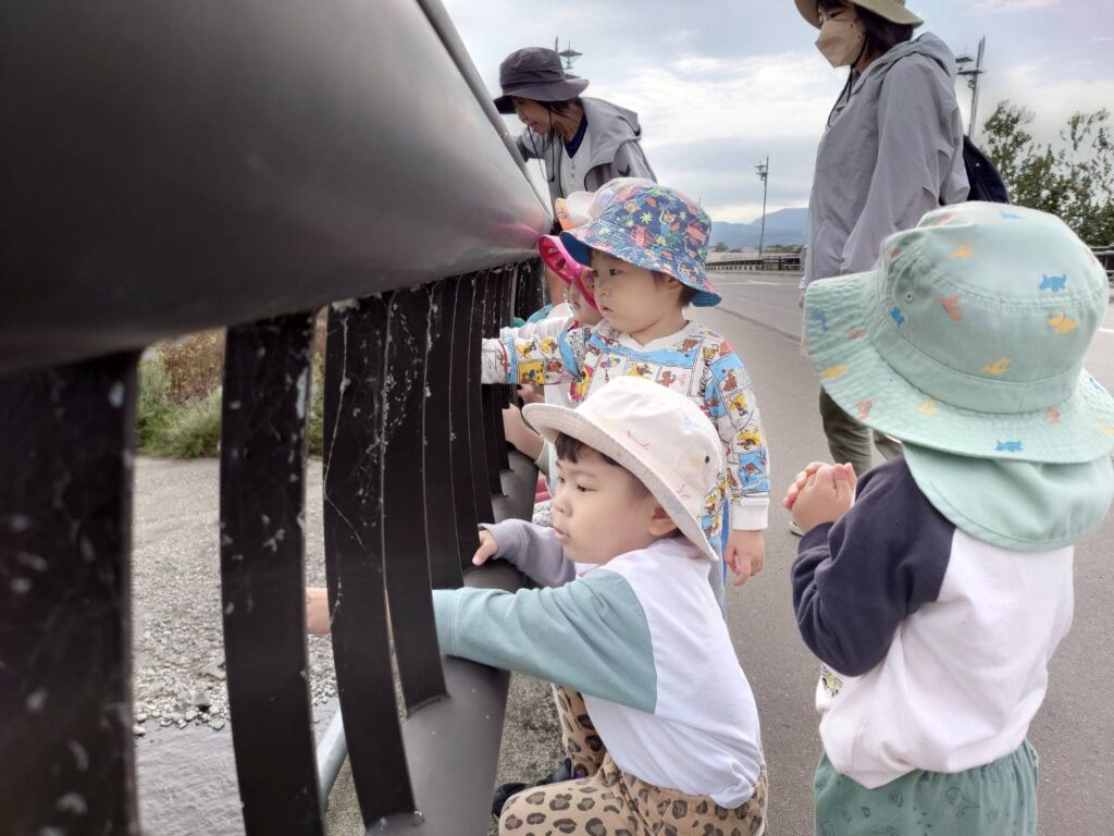 クリームちゃんはゆうらっぷ川へ鮭を見に行ってきました!タイミングよく鮭が跳ねている所を見ることが出来、「おさかな!!」と嬉しそうにする子どもたちでした💛