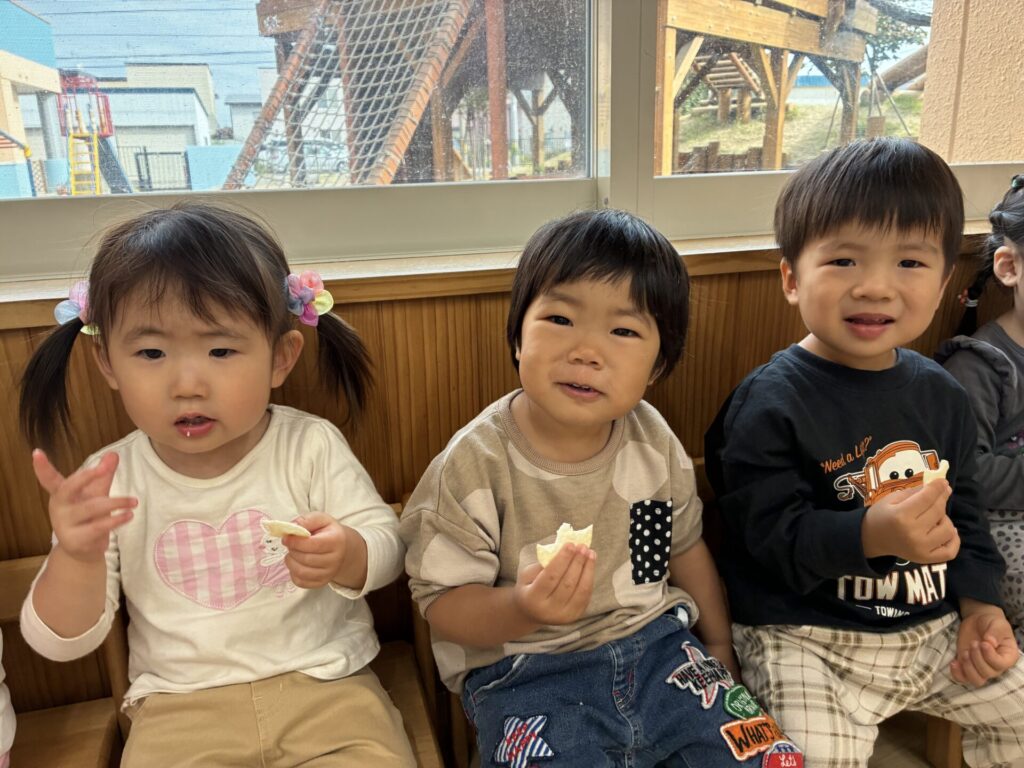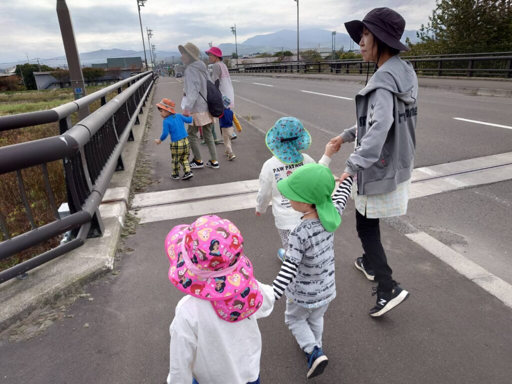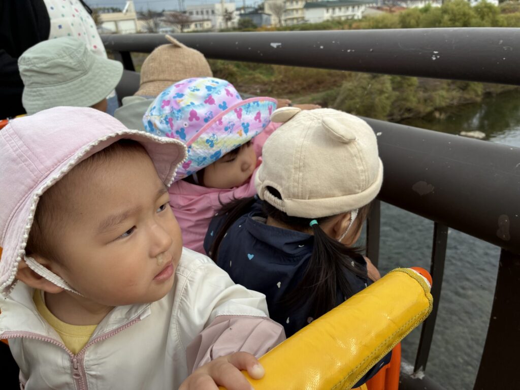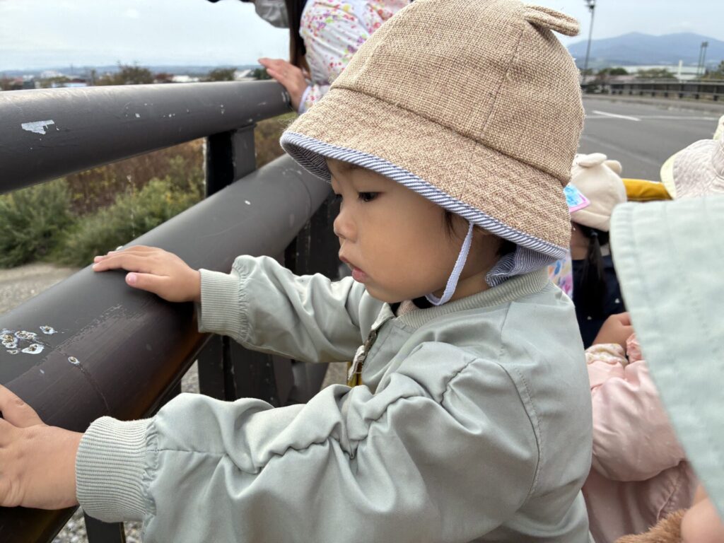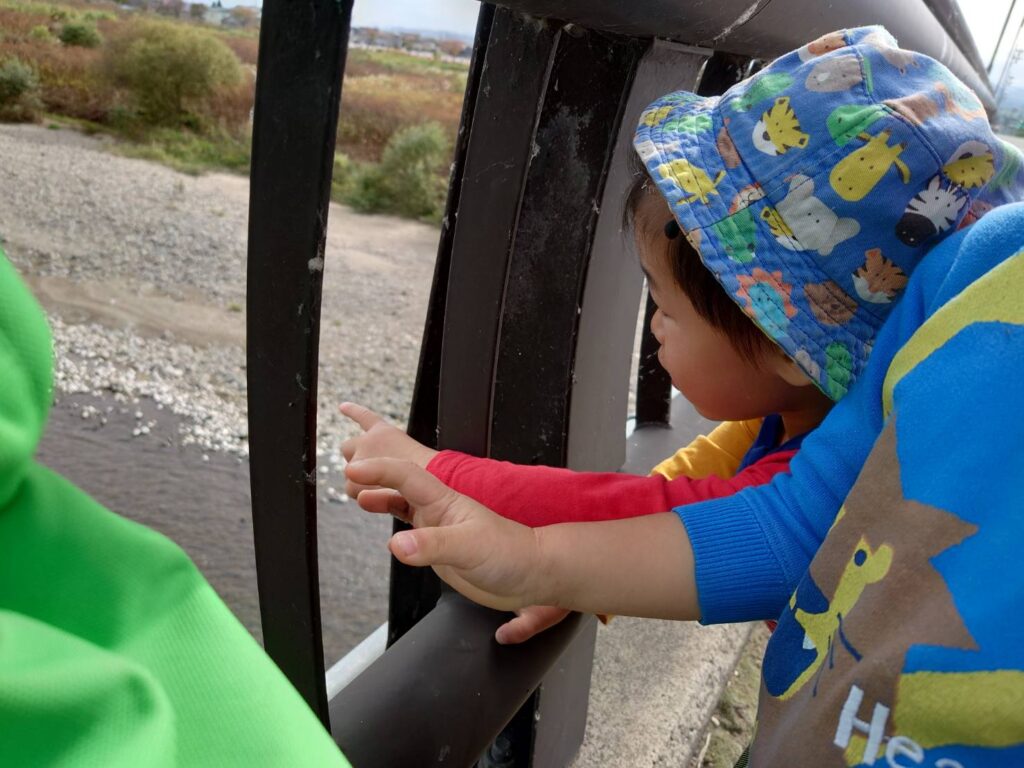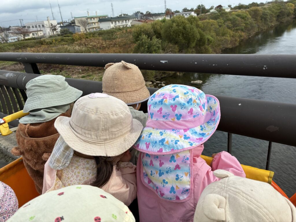 クリームちゃんはゆうらっぷ川へ鮭を見に行ってきました!タイミングよく鮭が跳ねている所を見ることが出来、「おさかな!!」と嬉しそうにする子どもたちでした💛