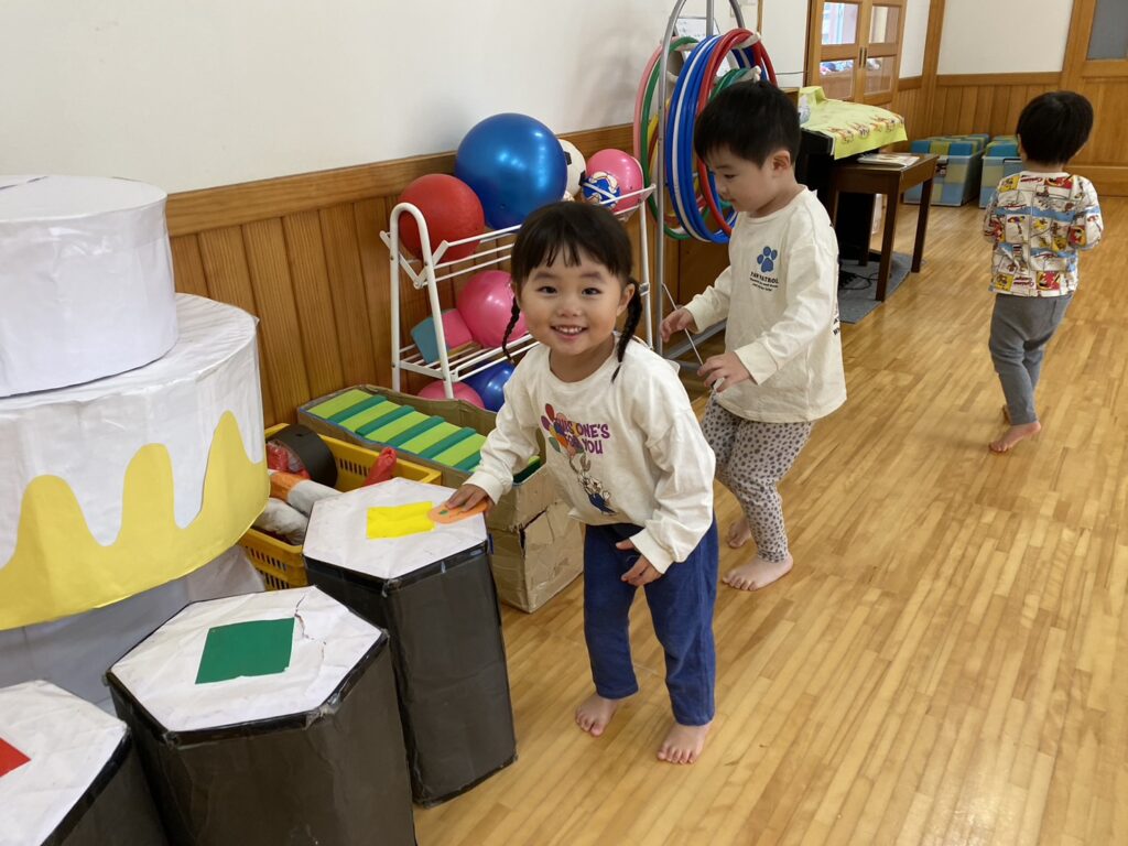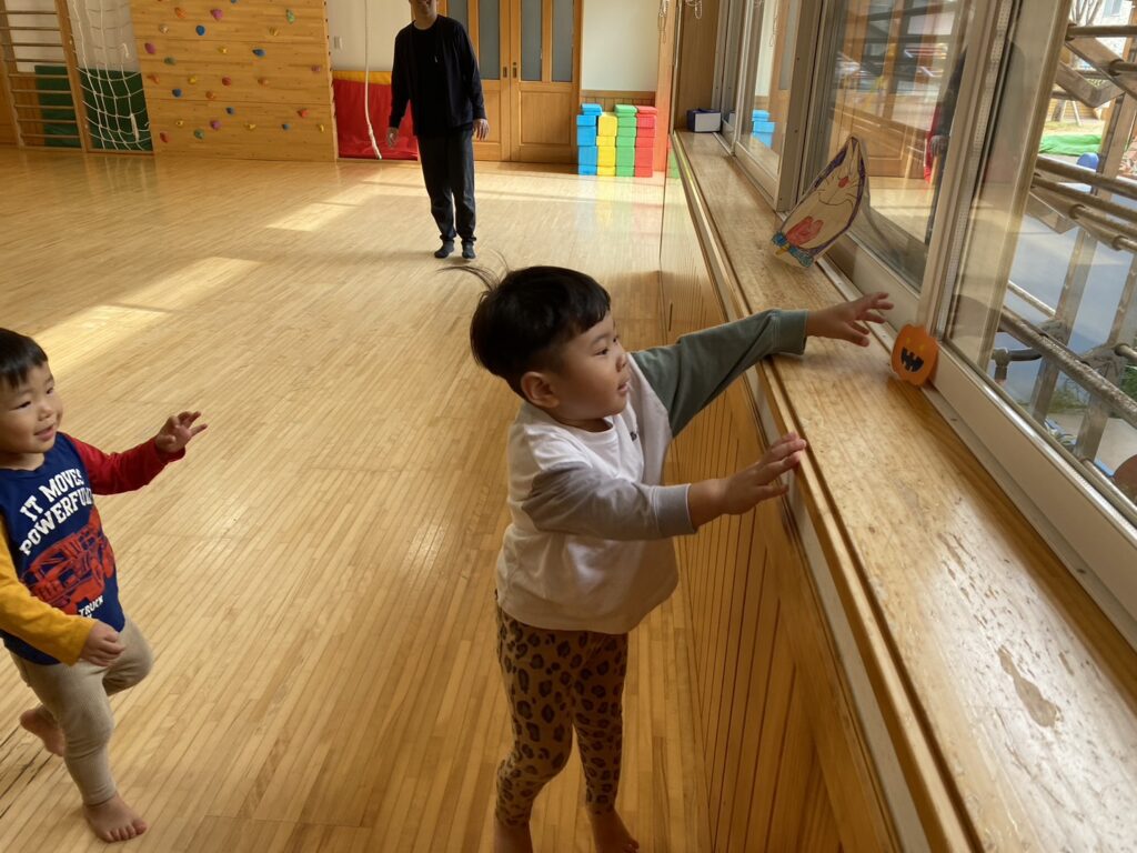 その後はホールで宝探しです🎃待っている間みんなで顔を隠し数えている姿が可愛いですね💛