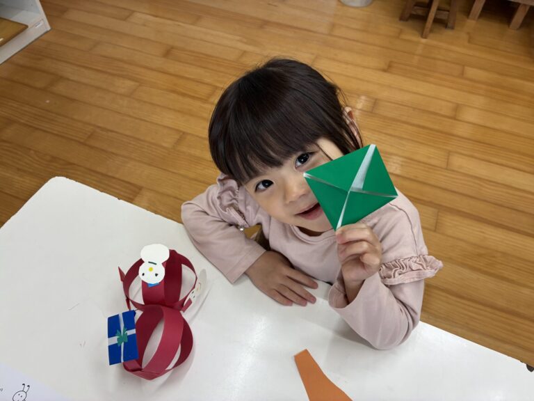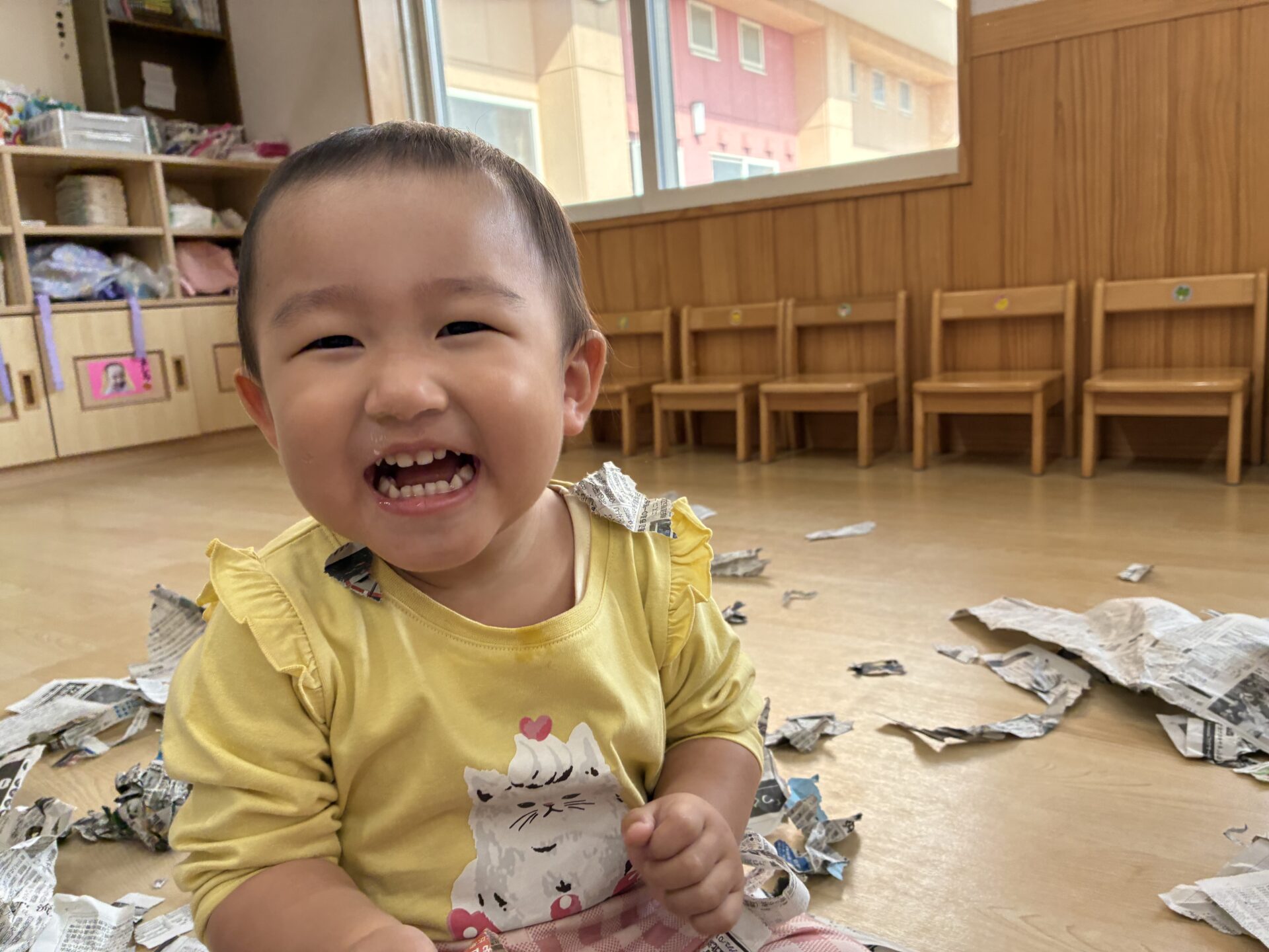 その後はお部屋で新聞遊びをしましたよ😊上から新聞を降らせると「きゃー!!」と大きな声を出して喜んでいてとても可愛らしかったです💕