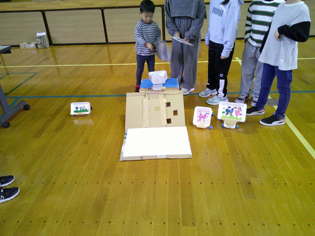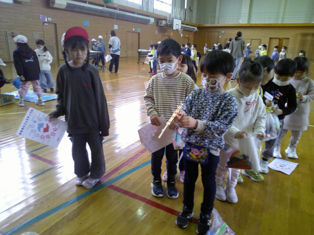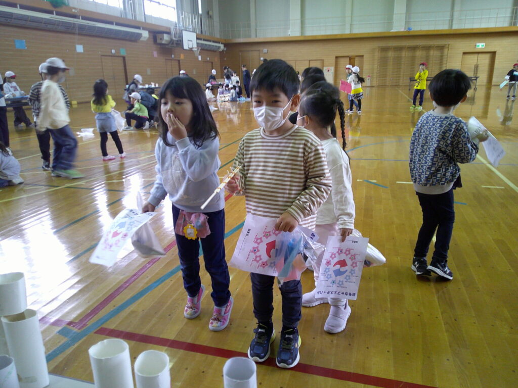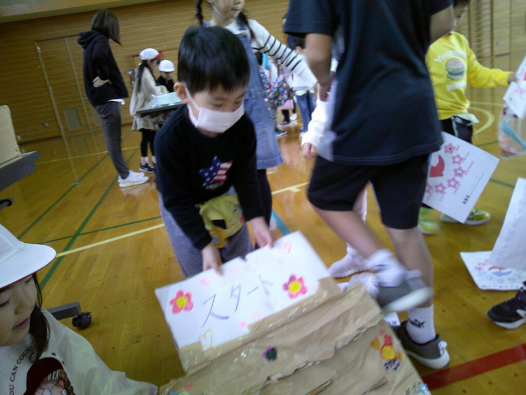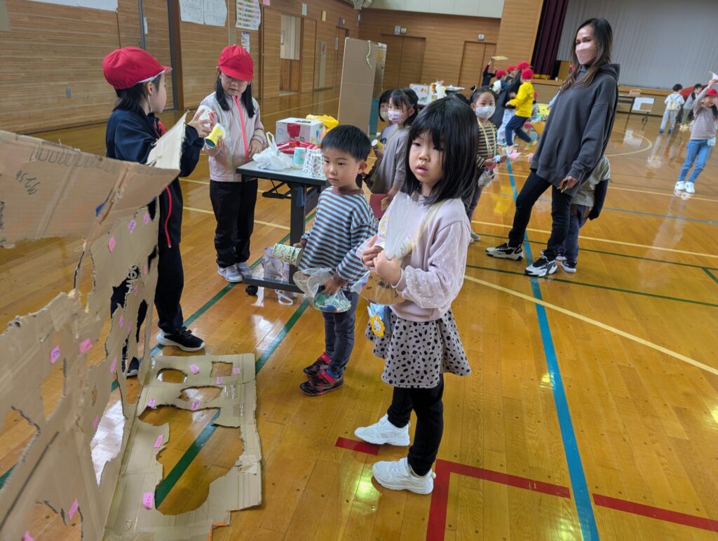 小学校の生活科の見学に行きました‼️「うごくおもちゃ」をテーマにしており、おもちゃ遊びを楽しんでいましたよ。小学生さんが沢山褒めてくれたり景品も貰ったりし大満足の一日でした。上靴の用意もありがとうございました‼️