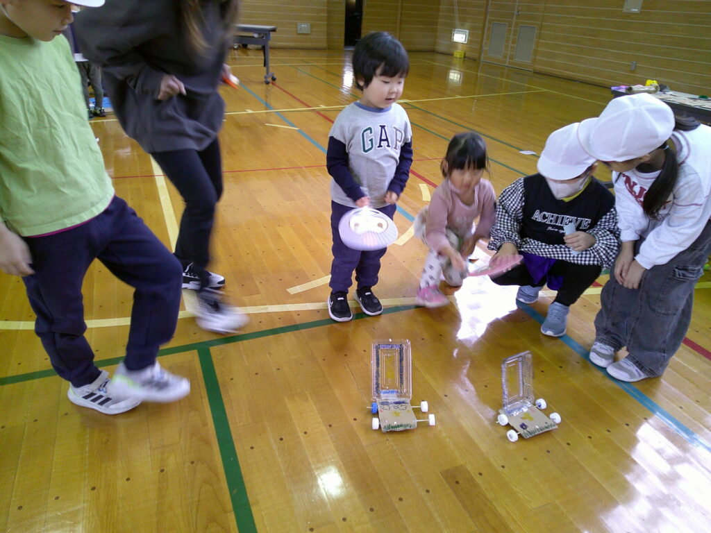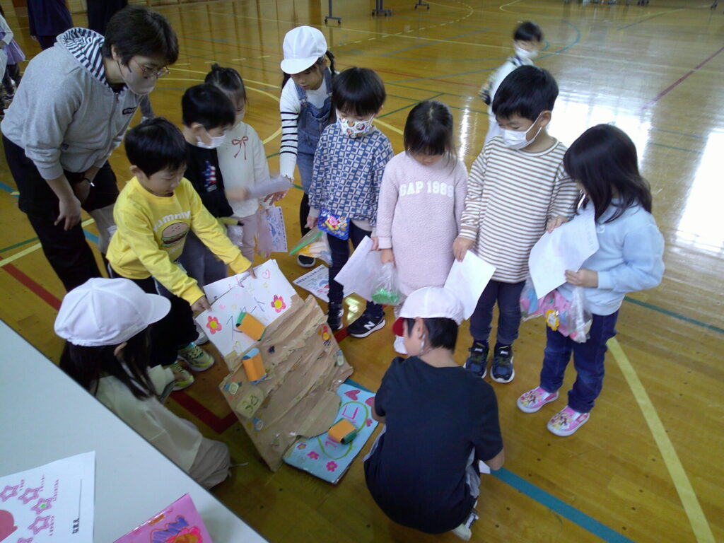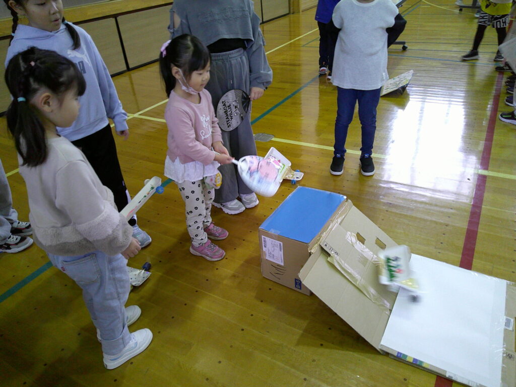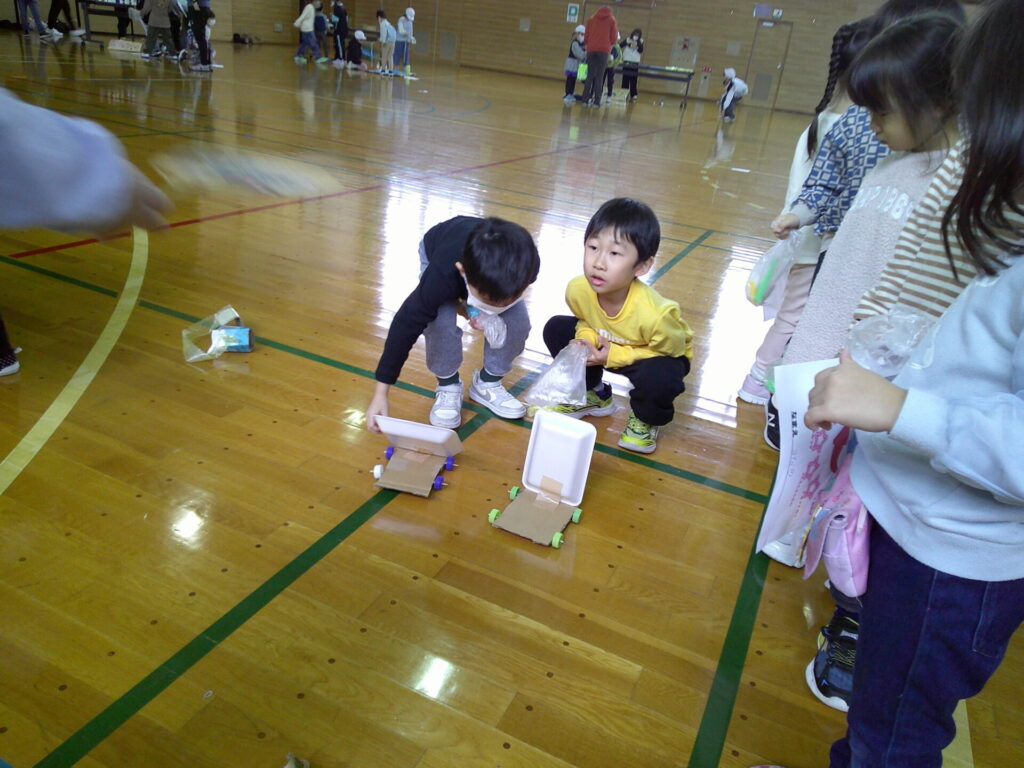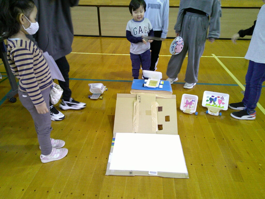 小学校の生活科の見学に行きました‼️「うごくおもちゃ」をテーマにしており、おもちゃ遊びを楽しんでいましたよ。小学生さんが沢山褒めてくれたり景品も貰ったりし大満足の一日でした。上靴の用意もありがとうございました‼️