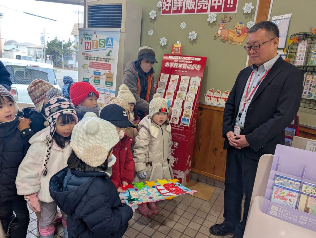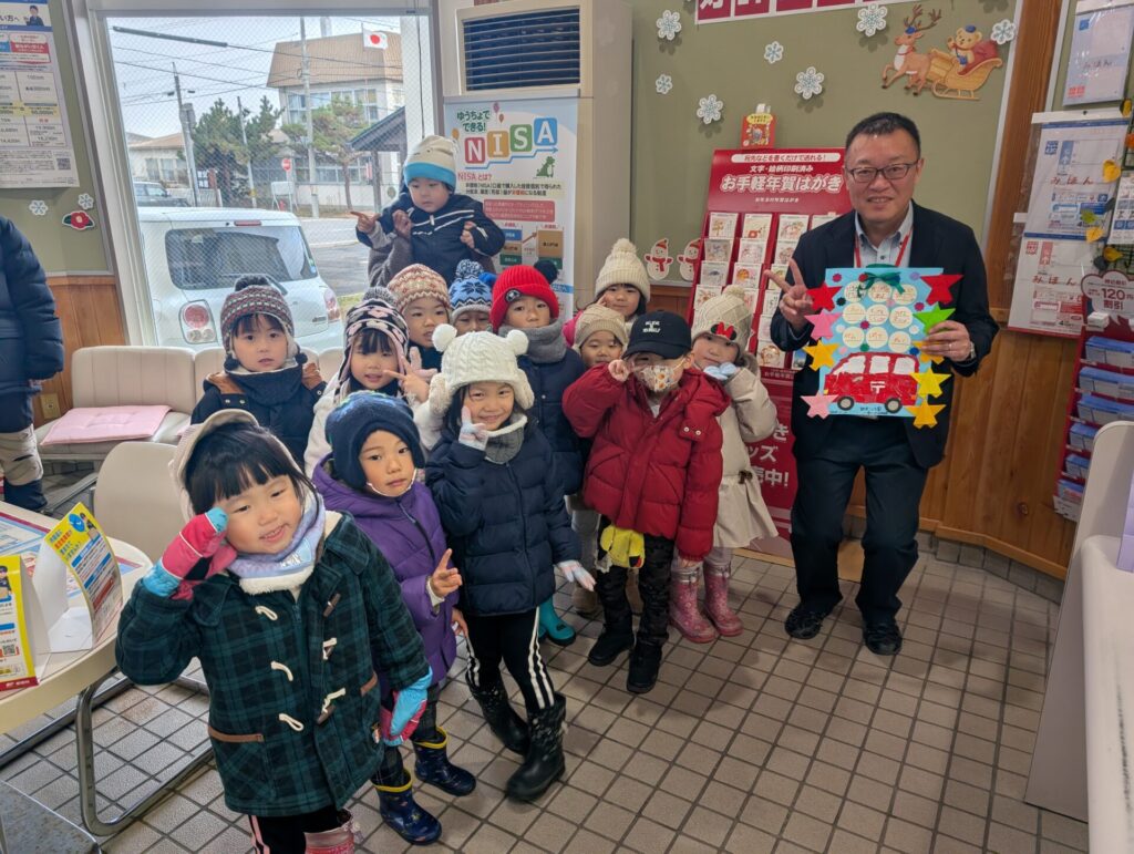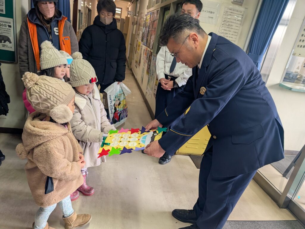 勤労感謝のプレゼントを警察署と駅前郵便局さんに届けに行きました☺️心を込めて作ったプレゼントを喜んでもらい嬉しそうな子ども達でした‼️