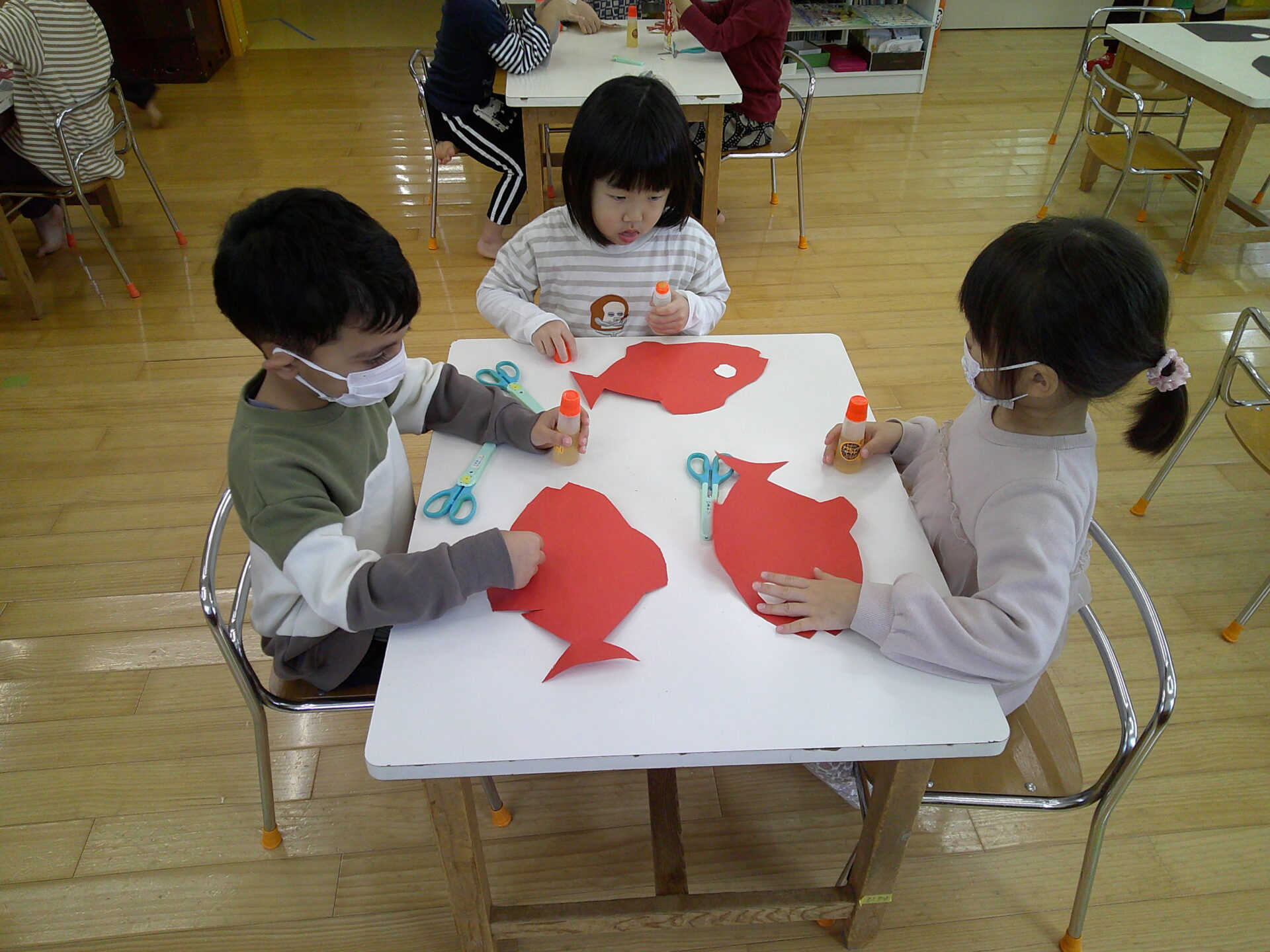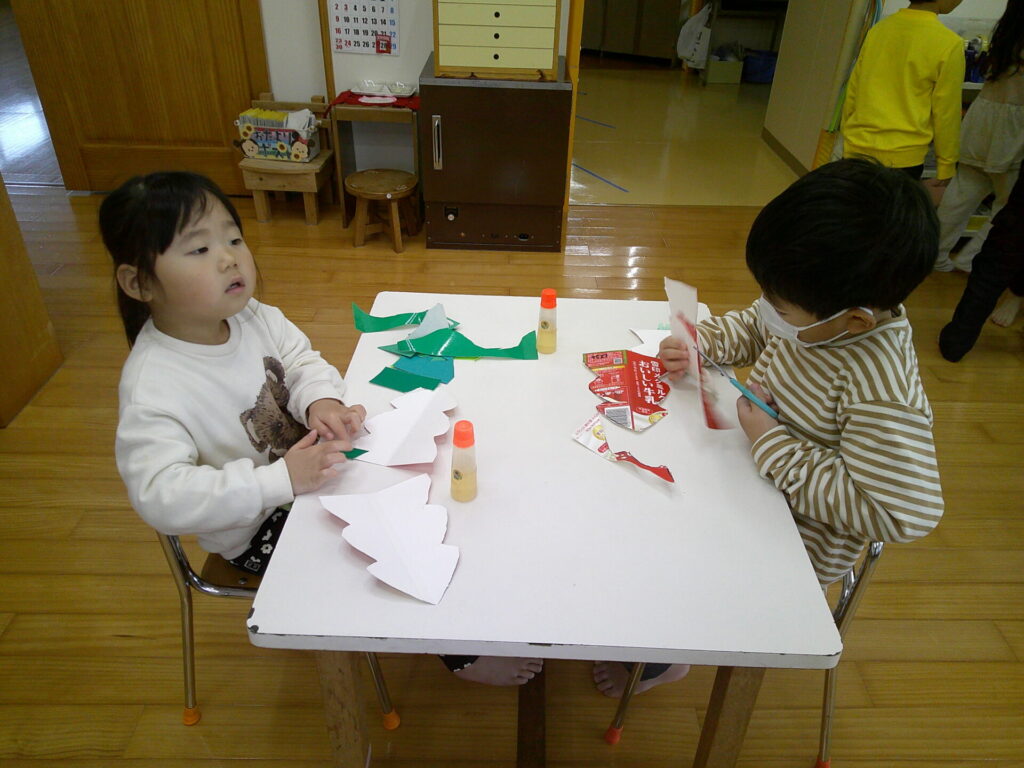 劇で使うお面を作ったり、はぴあで飾るクリスマス飾りを作りました🎄それぞれ役毎のお友達と集中して取り組んでいましたよ。劇で使うのが増えて来て期待も出ているようでした💓